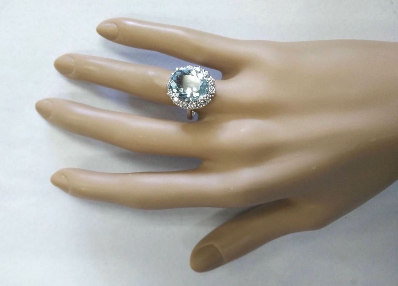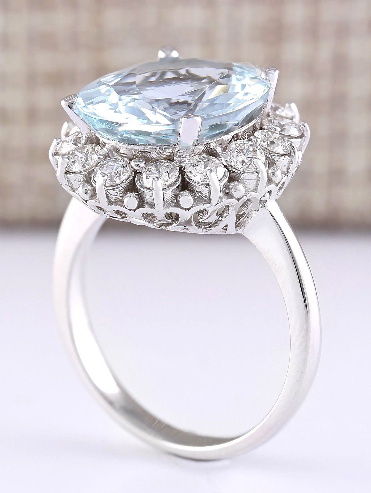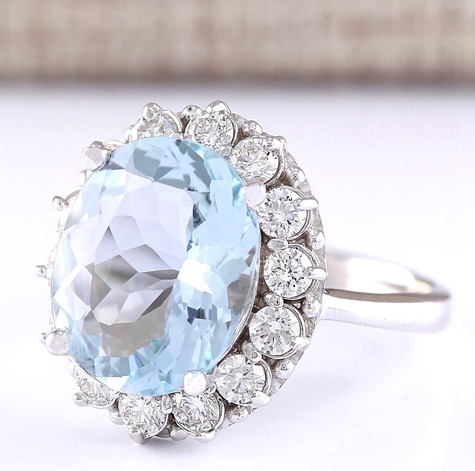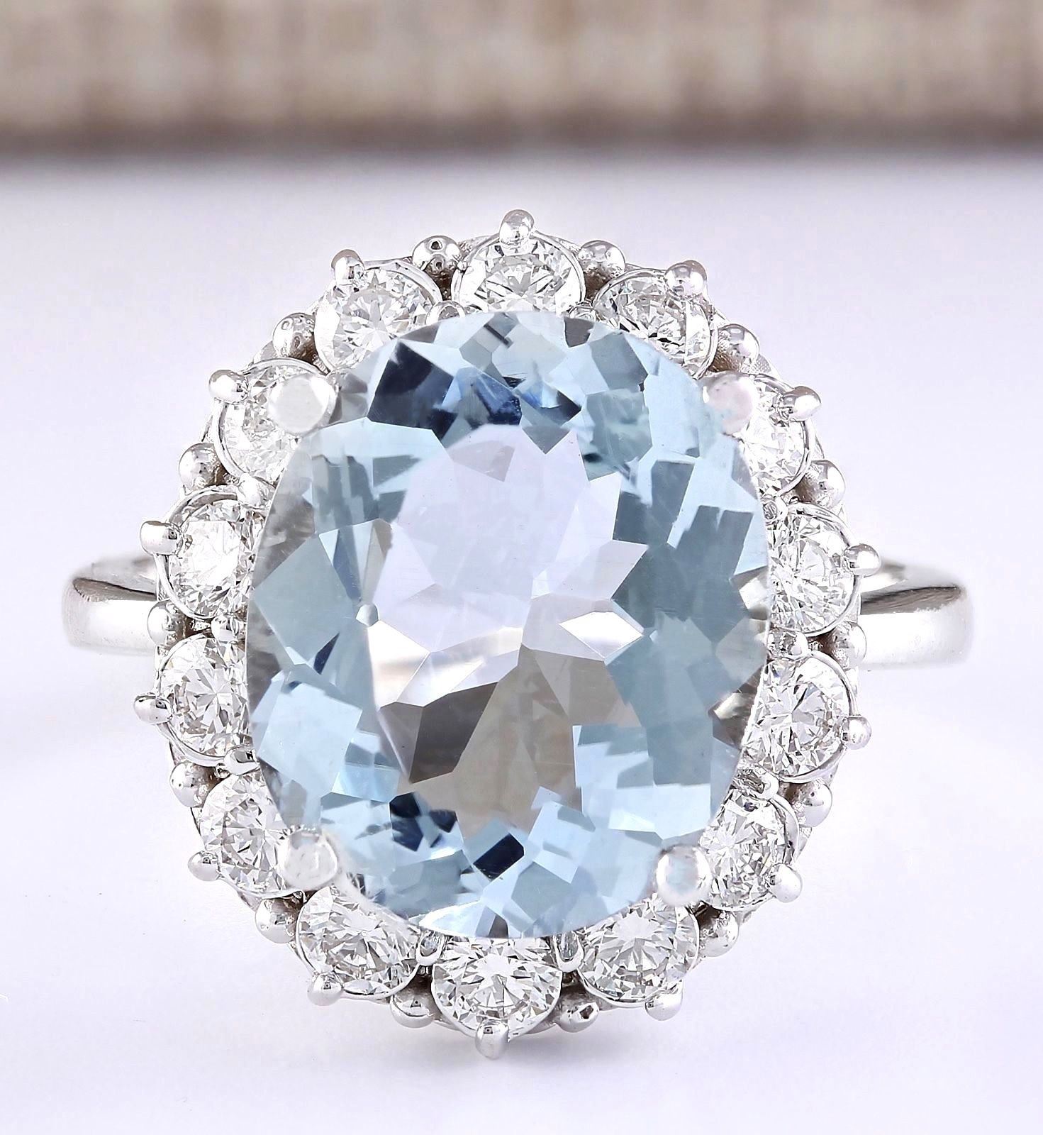 7.01 CTW Natural Aquamarine And Diamond Ring In 18K White Gold