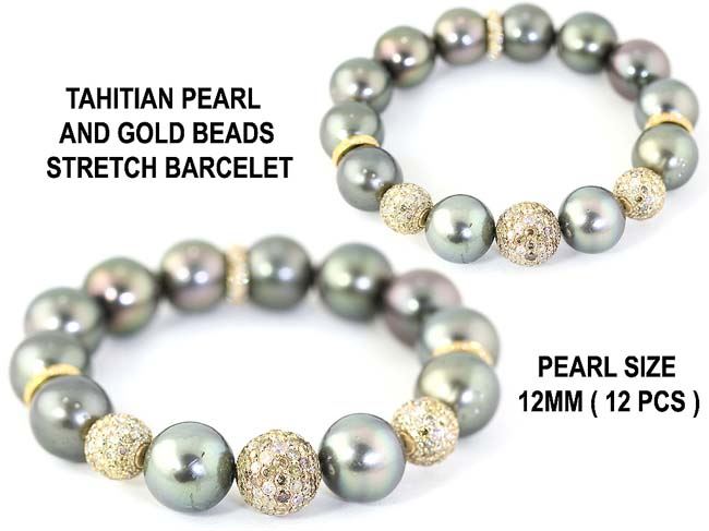 TAHITIANPEARL AND FANCY DIAMOND GOLD BEAD STRETCH BRACELET/Diamond Color & Clarity:FANCY/SI1-SI3/Diamond Count 1:/Diamond 1 TCW:7.01/Diamond Color & Clarity 2:/Diamond Count 2:/Diamond 2 TCW:/Gemstone Count 1:12/Gemstone TCW 1:/Gemstone Dimension:12MM/Gemstone TCW 2:/Metal Type 1:18k Gold Yellow Gold //Weight Gram:0.92&14k Gold Yellow Gold Weight Gram:5.01/Gross Weight: