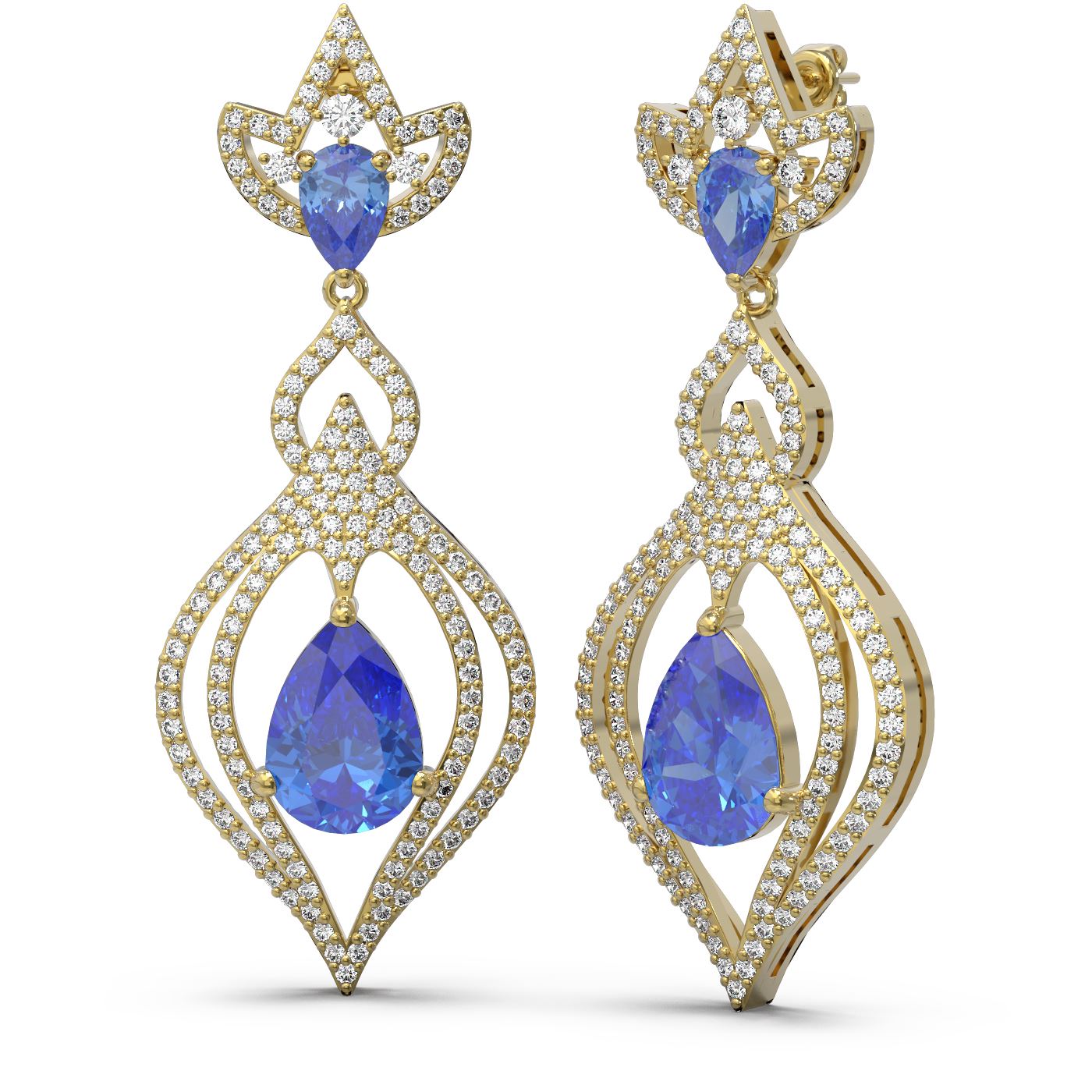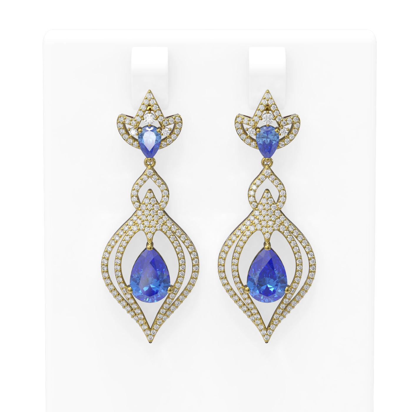 REF-354H5R - SKU: 60301 ---- 7.01 ctw Tanzanite & Diamond Earrings 18K Yellow Gold