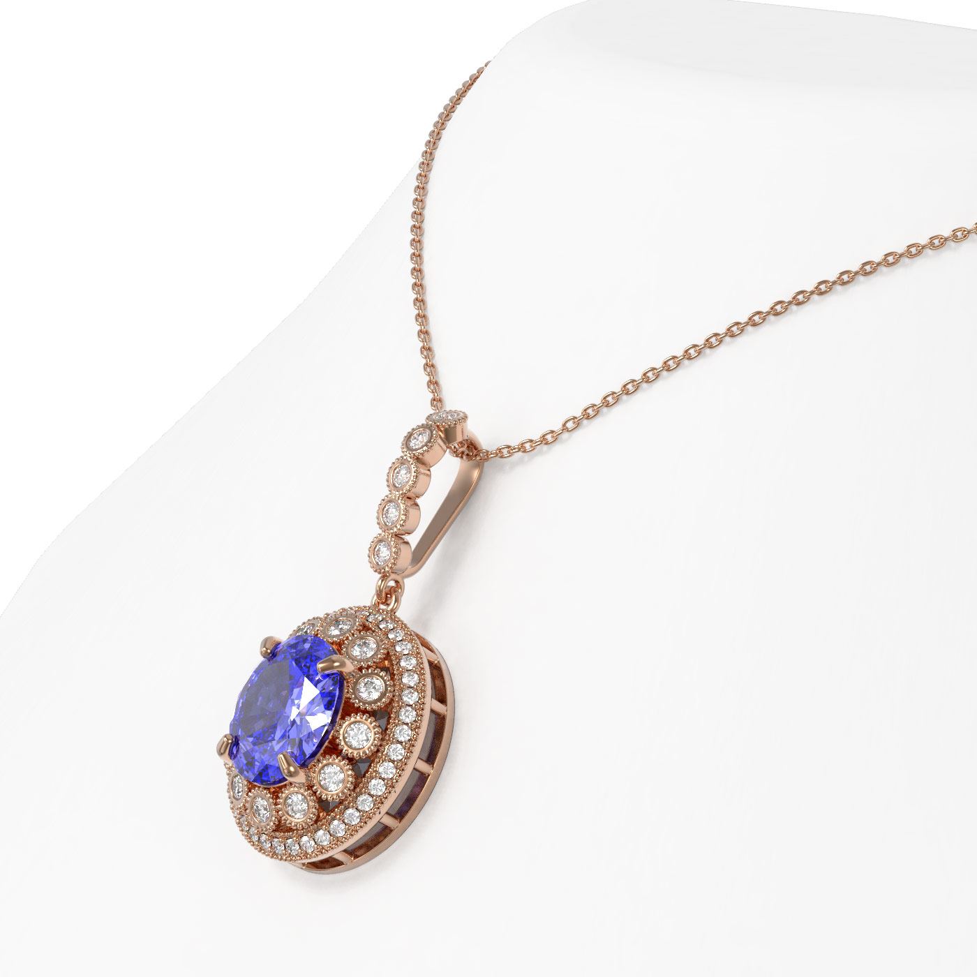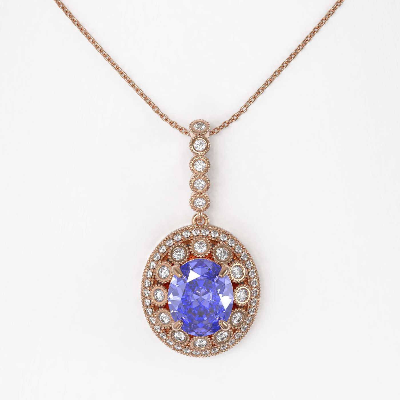 REF-298X5A - SKU: 43827 ---- 7.01 ctw Tanzanite & Diamond Victorian Necklace 14K Rose Gold
