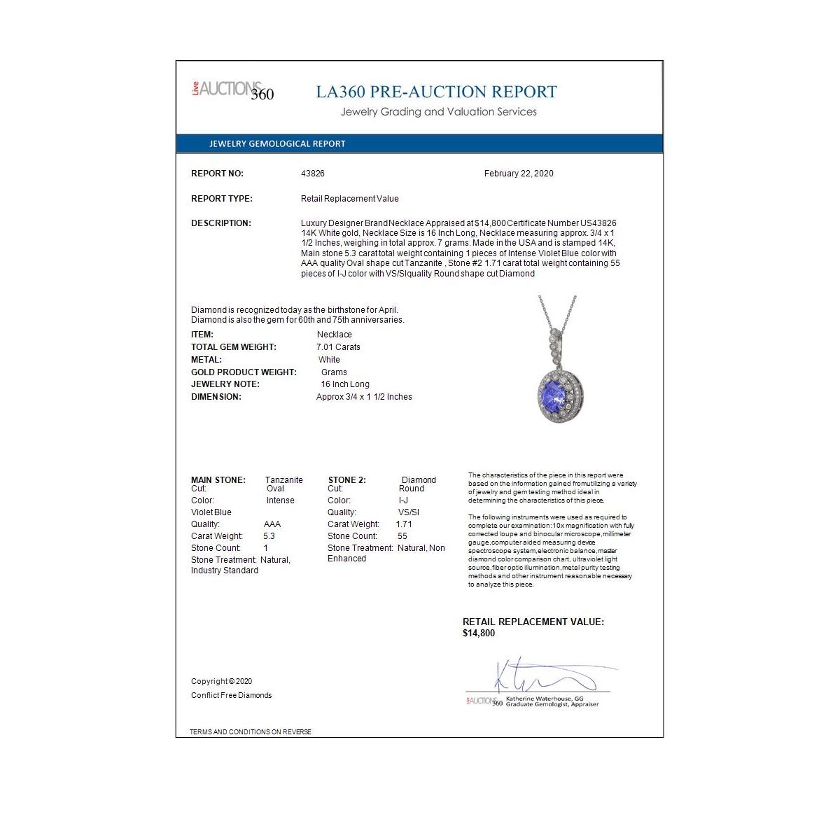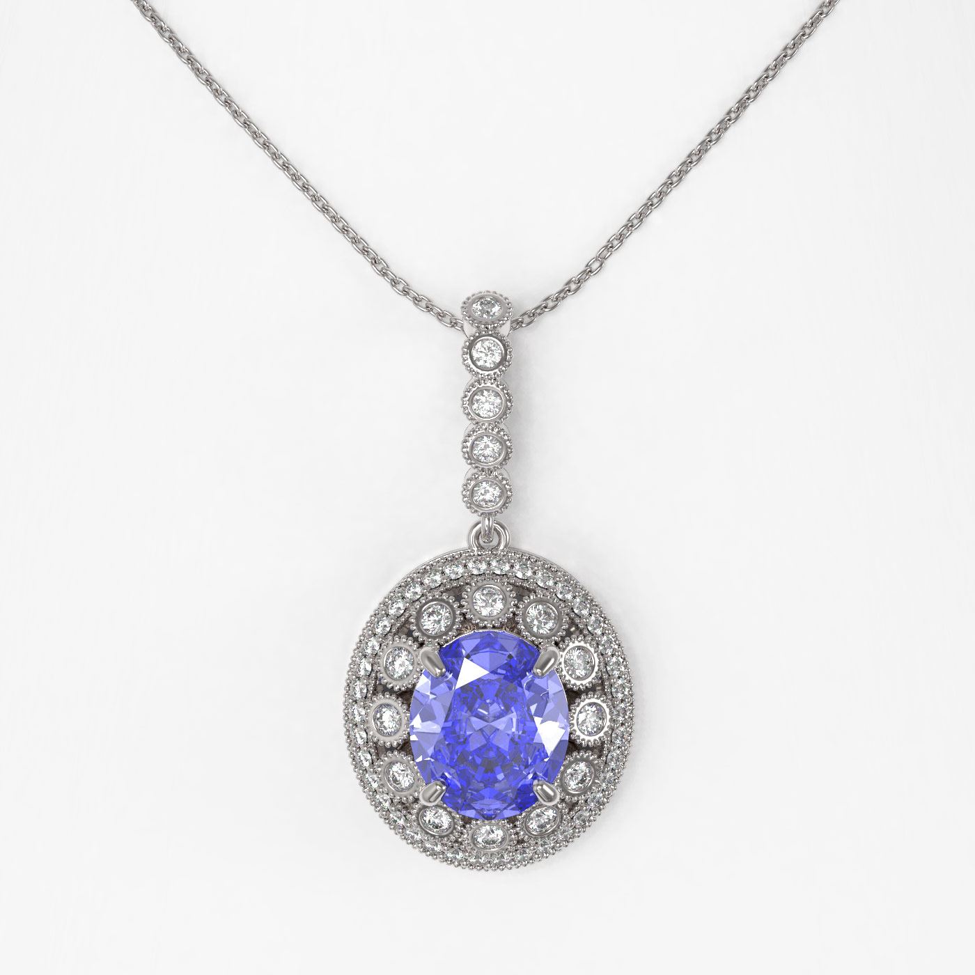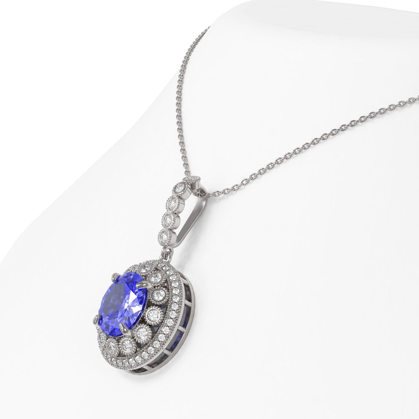 REF-298K5Y - SKU: 43826 ---- 7.01 ctw Tanzanite & Diamond Victorian Necklace 14K White Gold