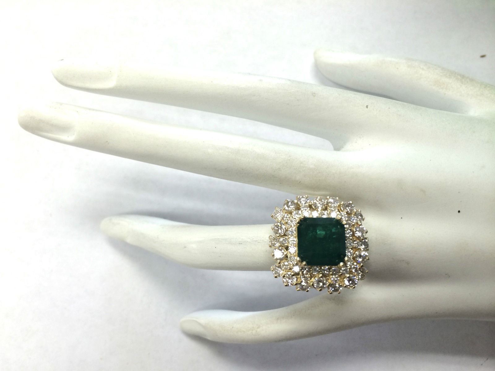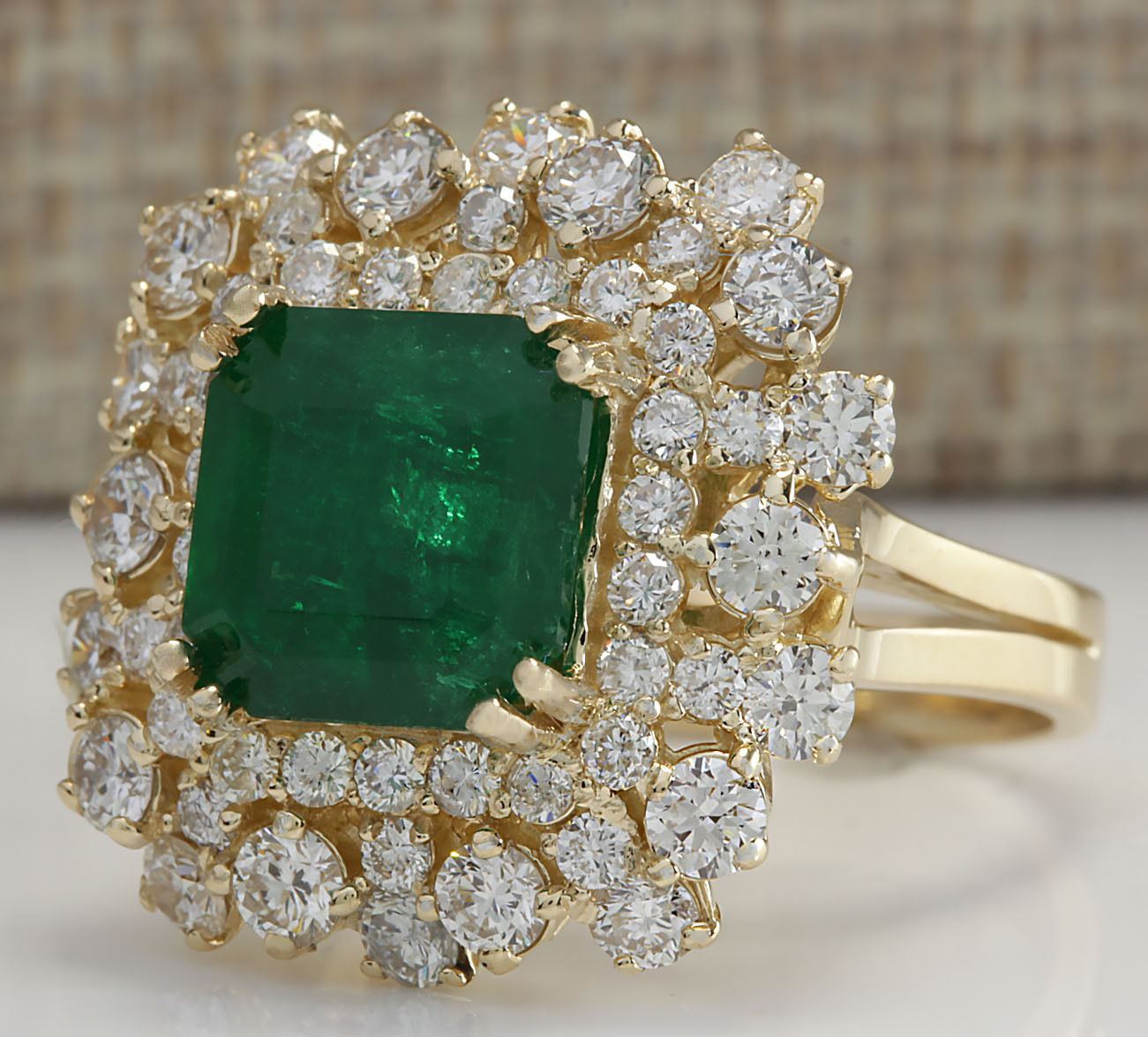 7.02 CTW Natural Emerald And Diamond Ring 18K Solid Yellow Gold