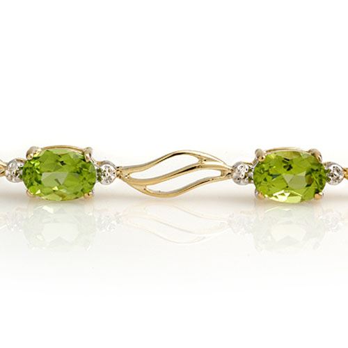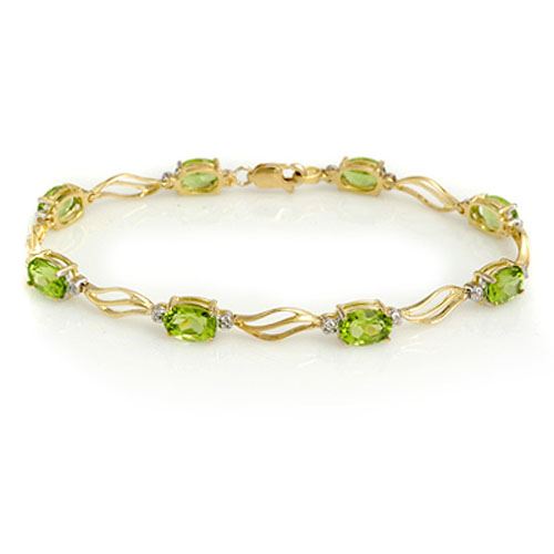 7.02 CTW Peridot & Diamond Bracelet 10K Yellow Gold ---- Luxury Designer Brand Bracelet Appraised Retail Price at $2,950 ---- SKU Number US10785 10k Yellow gold Bracelet Size is 7 Inches, Bracelet measuring approx. 7" x 3/16", weighing in total approx. 5.9 grams. Made in the USA and is stamped 10k, Main stone 7 carat total weight containing 8 pieces of Intense Green color with AAA quality Oval shape cut Peridot , Stone #2 0.02 carat total weight containing 2 pieces of H-I color with VS/SI quality Round shape cut