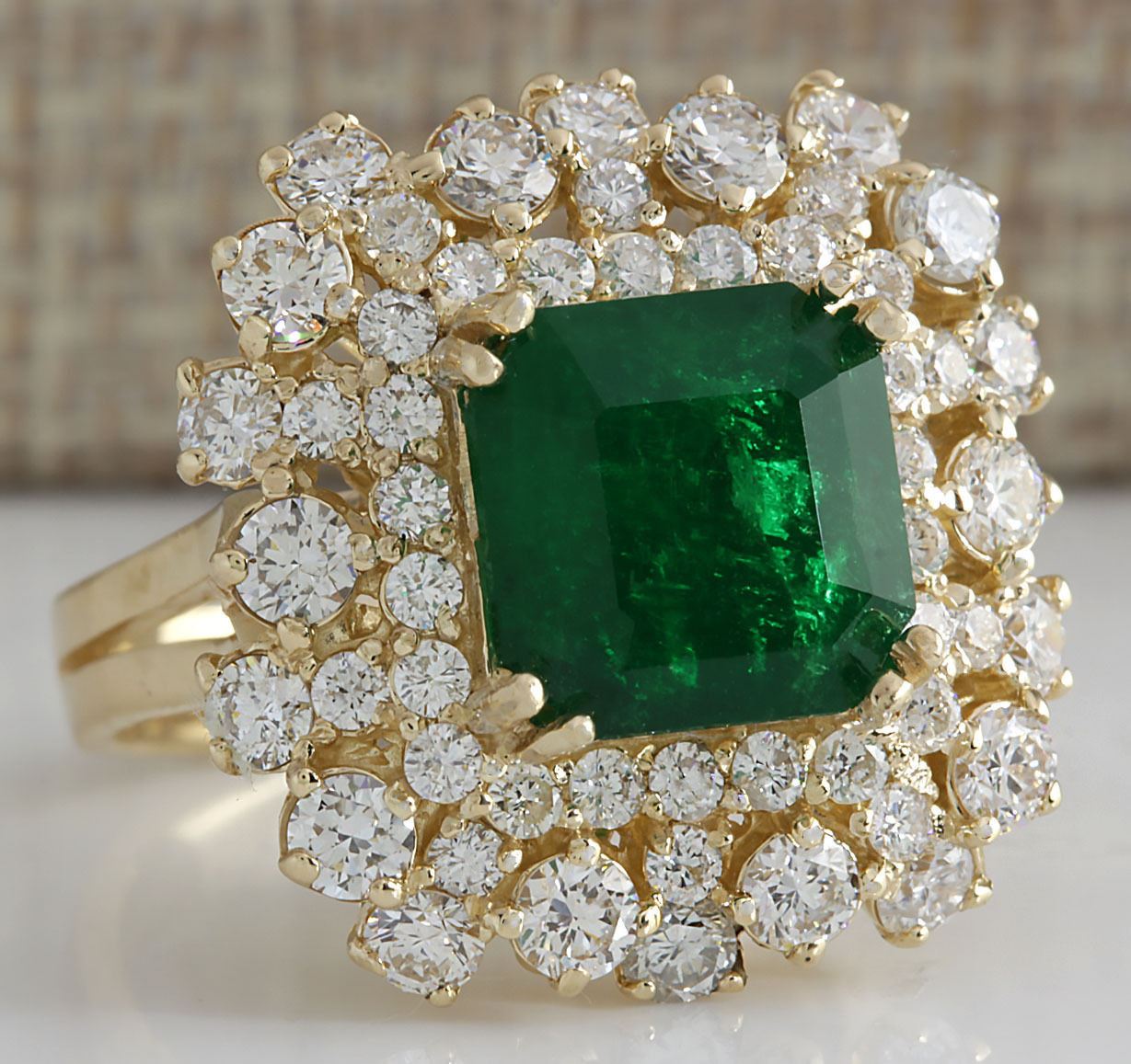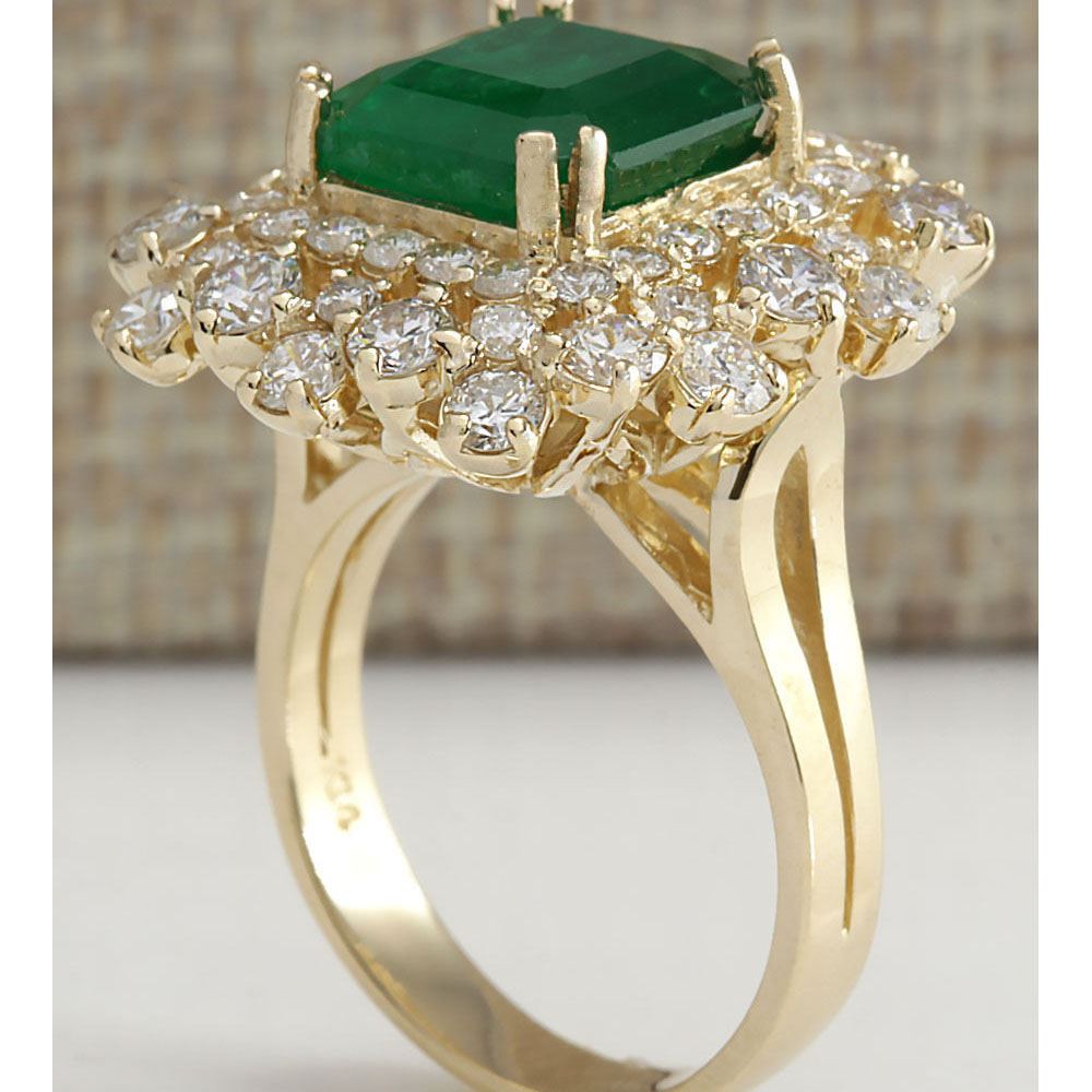 7.02CTW Natural Emerald And Diamond Ring 14K Solid Yellow Gold