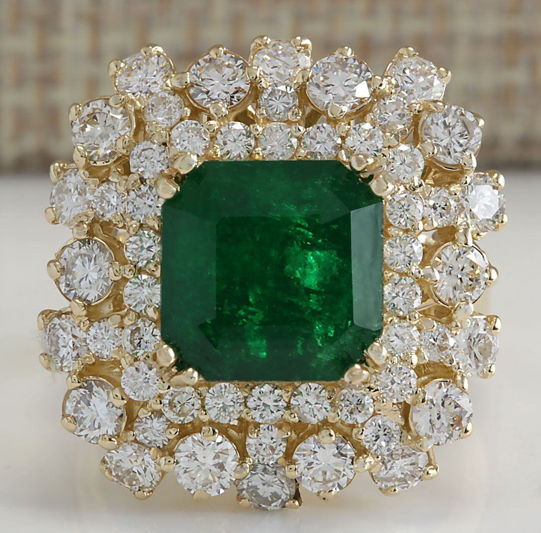 7.02CTW Natural Emerald And Diamond Ring 18K Solid Yellow Gold