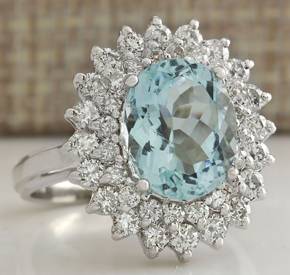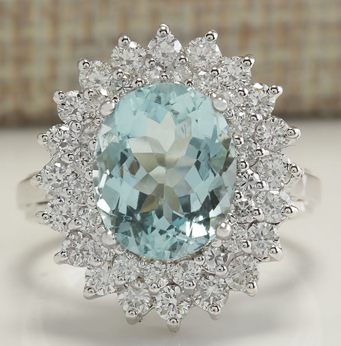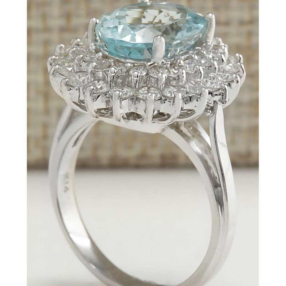 7.03 CTW Natural Aquamarine And Diamond Ring In 14K Solid White Gold