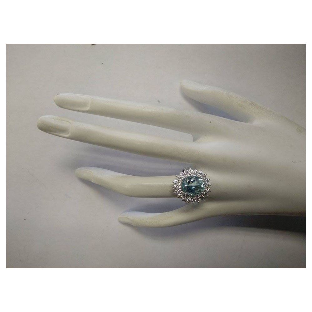 7.03 CTW Natural Aquamarine And Diamond Ring In 18K Solid White Gold