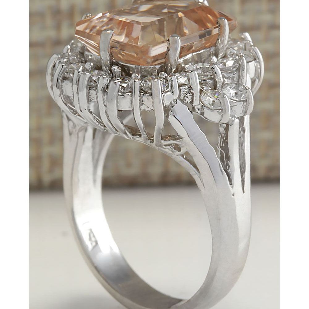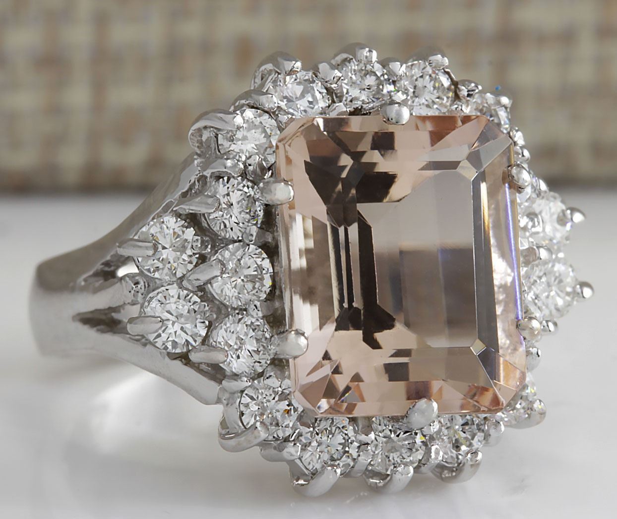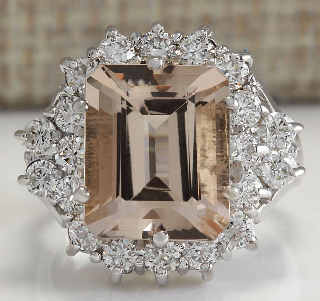 7.04 CTW Natural Morganite And Diamond Ring 18K Solid White Gold