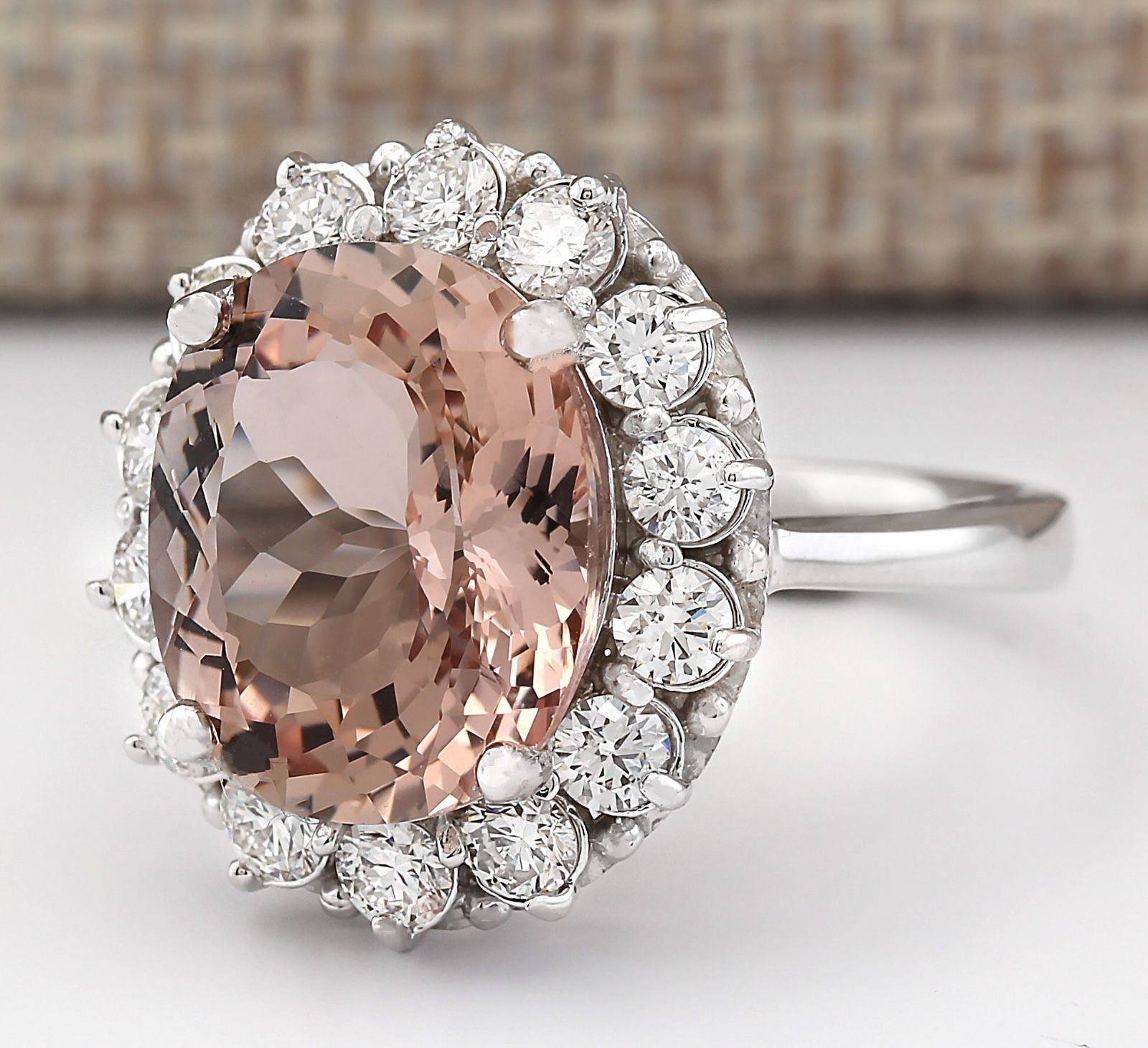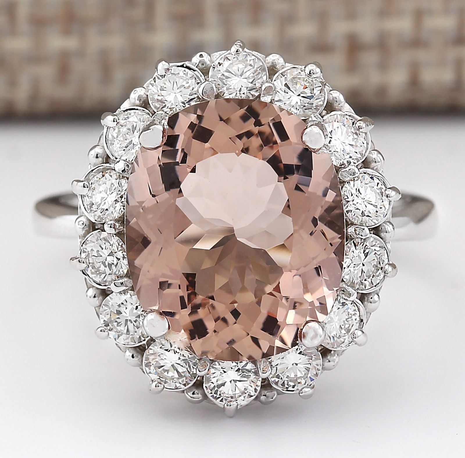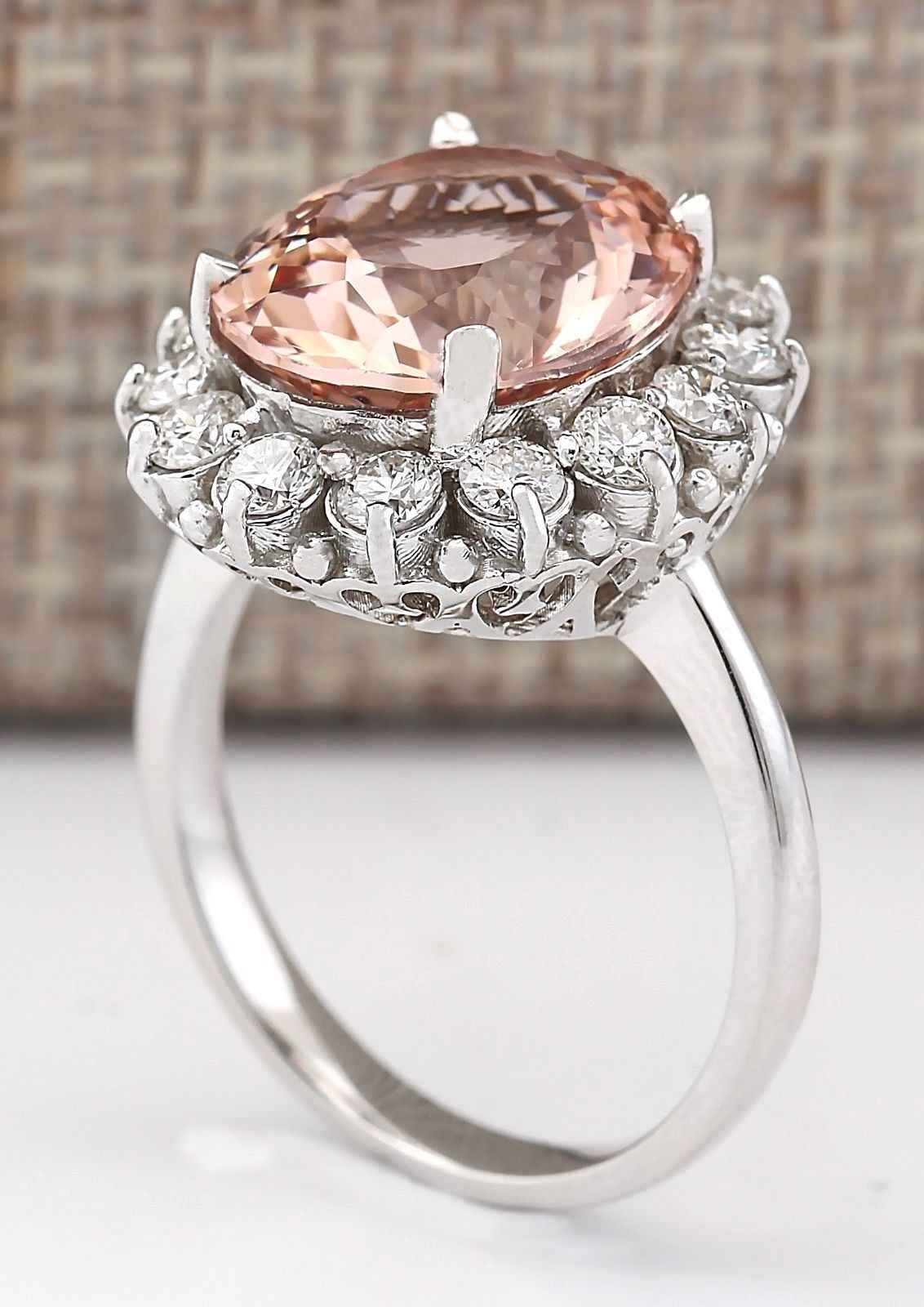 7.04 CTW Natural Morganite And Diamond Ring In 18K White Gold