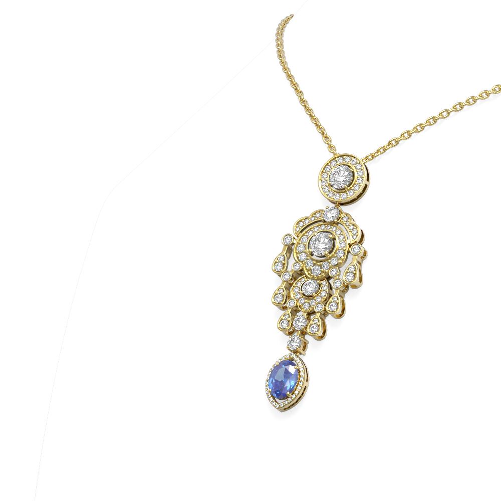 SKU: 55693 ---- 7.04 ctw Tanzanite & Diamond Necklace 18K Yellow Gold