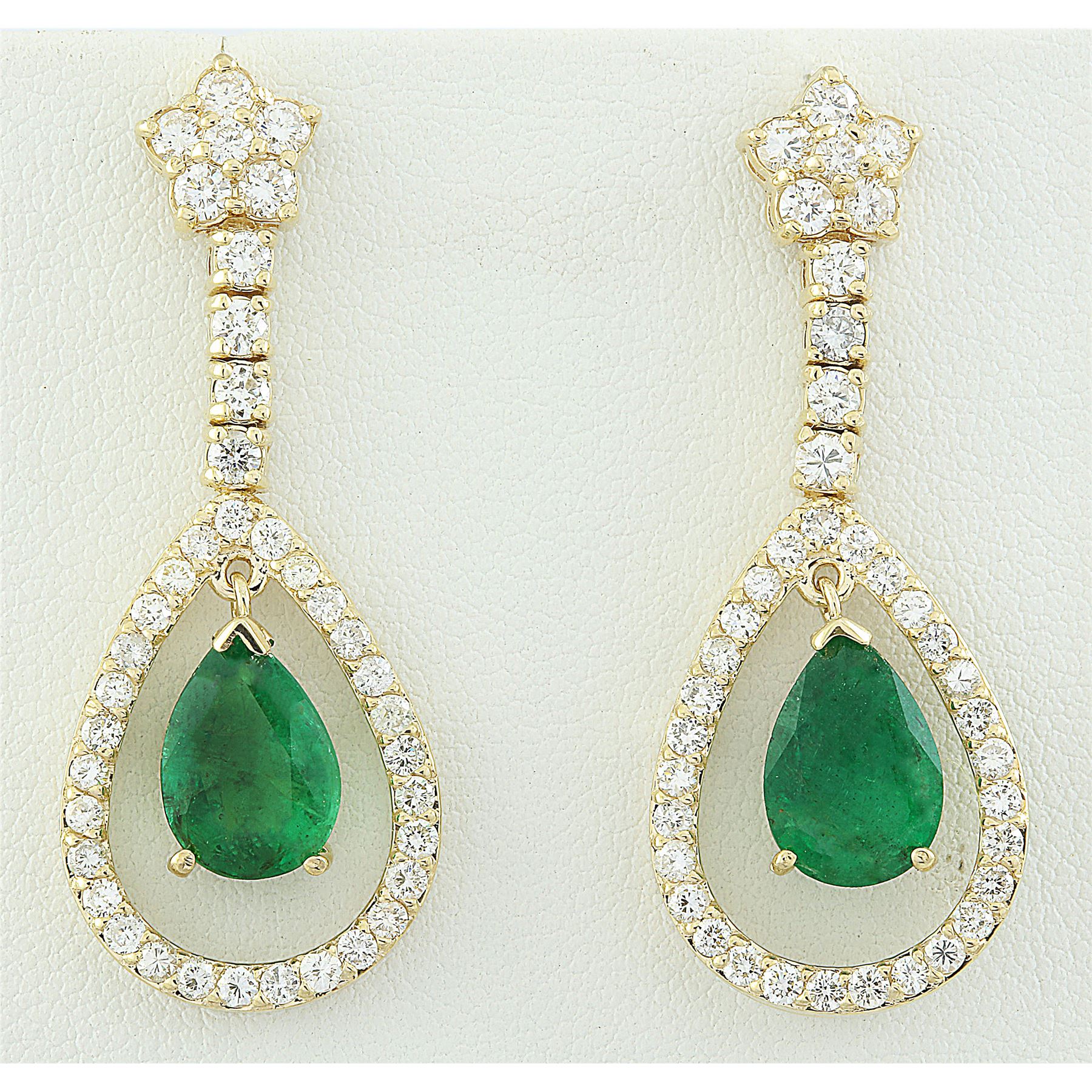 7.05 CTW Emerald 18K Yellow Gold Diamond Earrings