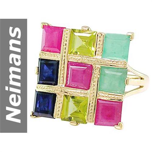 7.05 ct Emerald, Peridot, Ruby & Sapphire Ring 14kt Gold