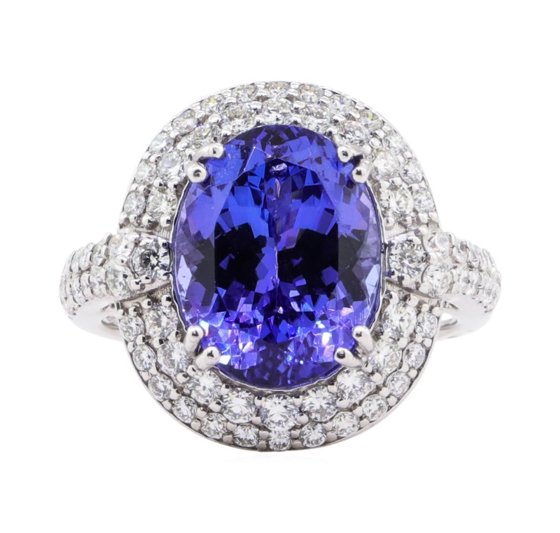 One electronically tested platinum ladies cast tanzanite & diamond ring. The featured tanzanite is set within a diamond bezel, supported by a lattice under gallery and diamond set shoulders, completed by a three millimeter wide band. Bright polish finish. Trademark is Orianne. Identified with markings of "PT950". Condition is new, good workmanship. Containing: One prong set oval modified brilliant cut natural tanzanite, measuring 13.13 x 10.14 x 7.20mm, exact weight 7.05ct., type I Clarity is eye clean, medium, very slightly grayish, violet-blue color, (GIA VB 5/3), cut is good. Transmitting light with no distortion, transparent. GIA Gemological Report attached. Graded loose prior to setting in the GIA Laboratory, Report #1172871664.Tanzanite is a very rare gemstone that is only found in the country of Tanzania. Originally discovered in 1967. Tiffany & Company, named the stone Tanzanite. It is found in the Usumburu Mountains that border the Umba Valley of northern Tanzania. Tanzanite occurs in gray, brown, violet, blue, reddish-purple, & green. The gem is interesting because of its exceptional pleochroism. Rotated in different directions a tanzanite will exhibit multiple changes of color. Tanzanite has a low tolerance to ultrasonic cleaning, and should not be cleaned using this method. Seventy prong set round brilliant cut diamonds, measuring 1.90 - 1.40 x 0.99mm (depth est.) exact total weight 70 Stones = 1.20 ct. Graded in the setting. Clarity SI-1 to SI-2 Color F - H Total Weight of Colored Stones 7.05 ct. Total Weight of Diamonds 1.20 ct. Total Weight of Ring 10.50 gm Estimated Retail Value $ 21,990.00 US