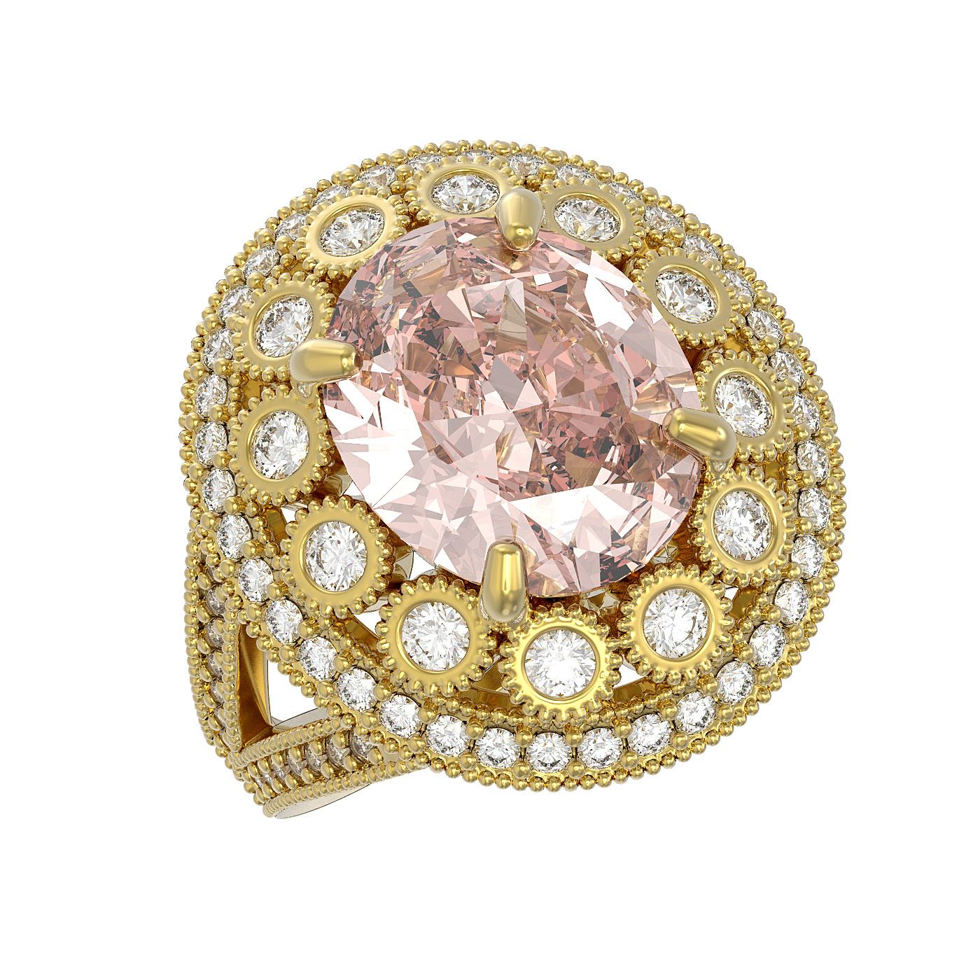 SKU: 43762 ---- 7.06 ctw Certified Morganite & Diamond Victorian Ring 14K Yellow Gold