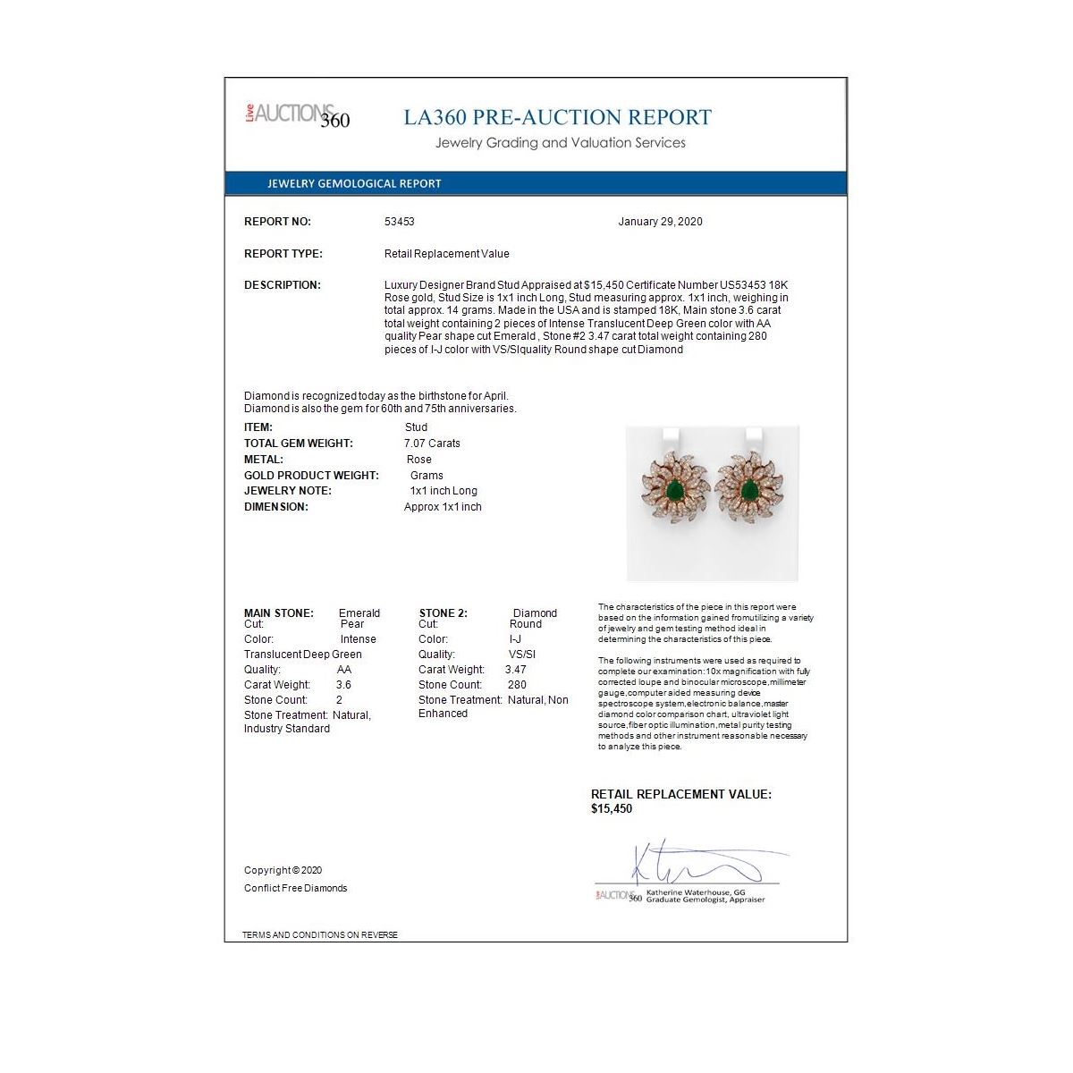 REF-350K8Y - SKU: 53453 ---- 7.07 ctw Emerald & Diamond Earrings 18K Rose Gold