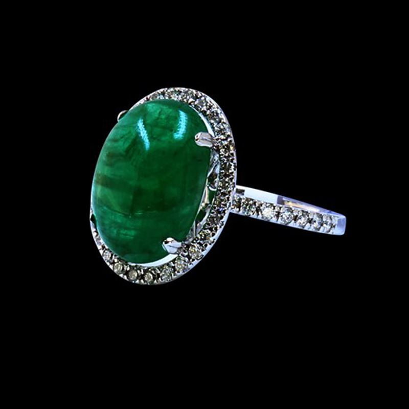14K W/G NATURAL COLUMBIAN EMERALD RING :3.17GR/DIA :0.47CT/COLUMBIAN EMERALD: 7.07CT/#GVR1392