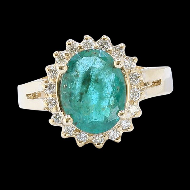 14K Y/G NATURAL COLUMBIAN EMERALD RING :3.17GR/DIA :0.47CT/COLUMBIAN EMERALD :7.07CT/#GVR1393