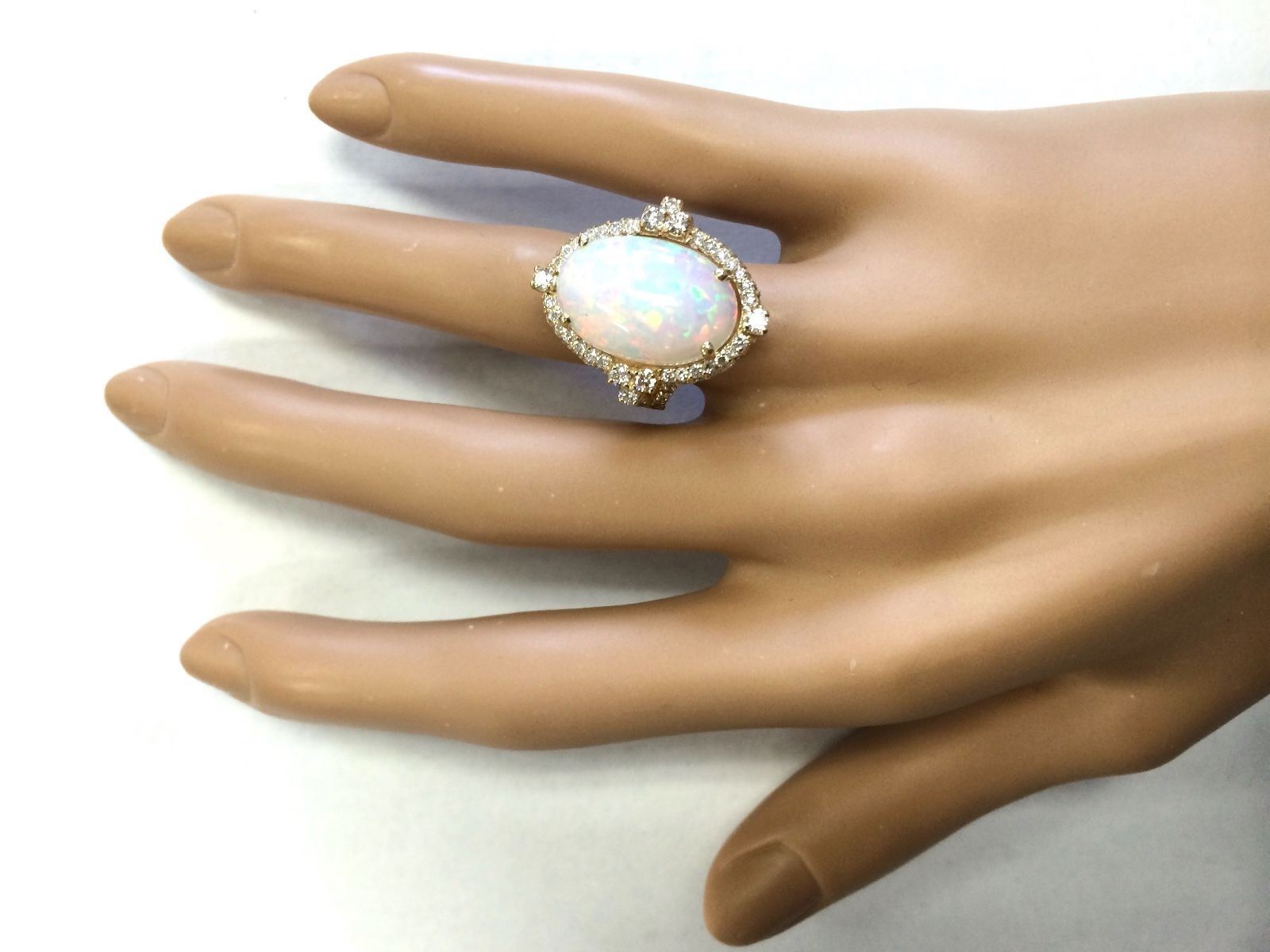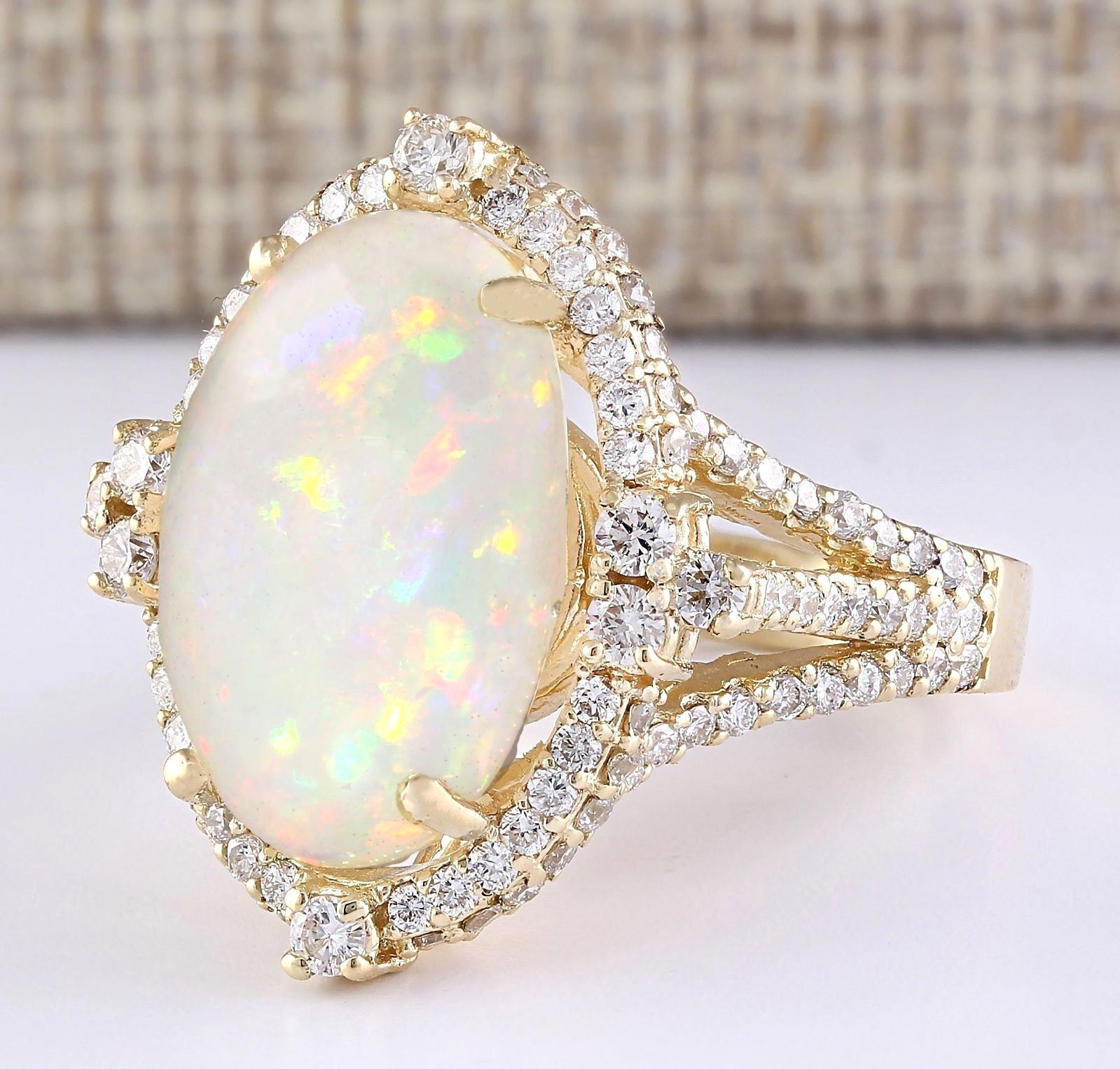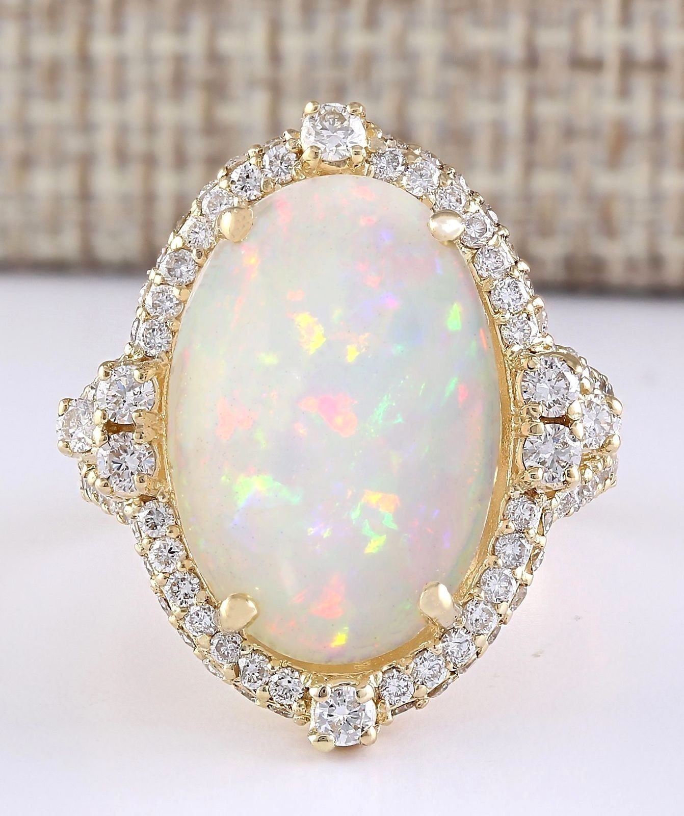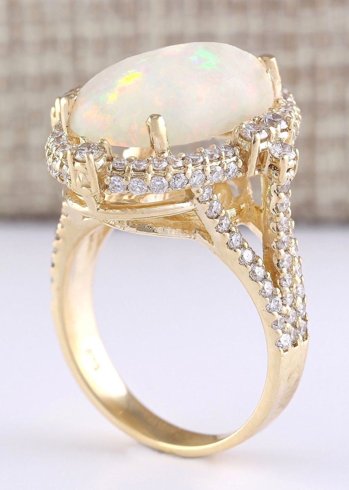 7.09 CTW Natural Opal And Diamond Ring In 14k Yellow Gold