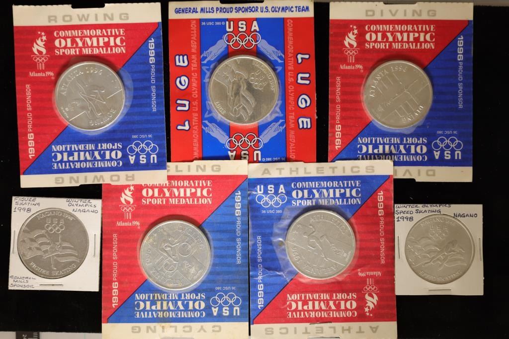 5-ARE IN ORIGINAL GENERAL MILLS PACKAGING. 1996 ROWING, LUGE, DIVING, CYCLING, ATHLETICS, 1998 SPEED SKATING AND FIGURE SKATING