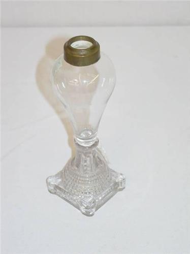 7 1/2" CLEAR SANDWICH OIL LAMP W/ STEPPED BASE - NO BURNER, SMALL CHIPS ON BASE RIM;