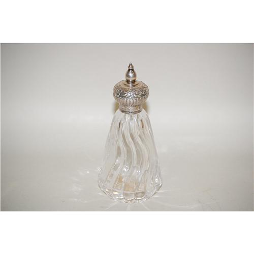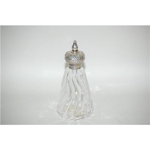 ENGLISH SILVER & CRYSTAL COLOGNE - 7 1/2" CRYSTAL COLOGNE BOTTLE W/ RIBBED BODY & ENGLISH SILVER TOP W/ REPOUSSE FLOWERS & BIRMINGHAM 1916-1917 MAKERS MARK J.G. & S - LID MISSING DAUBER, MINOR WEAR & IMPERFECTIONS;