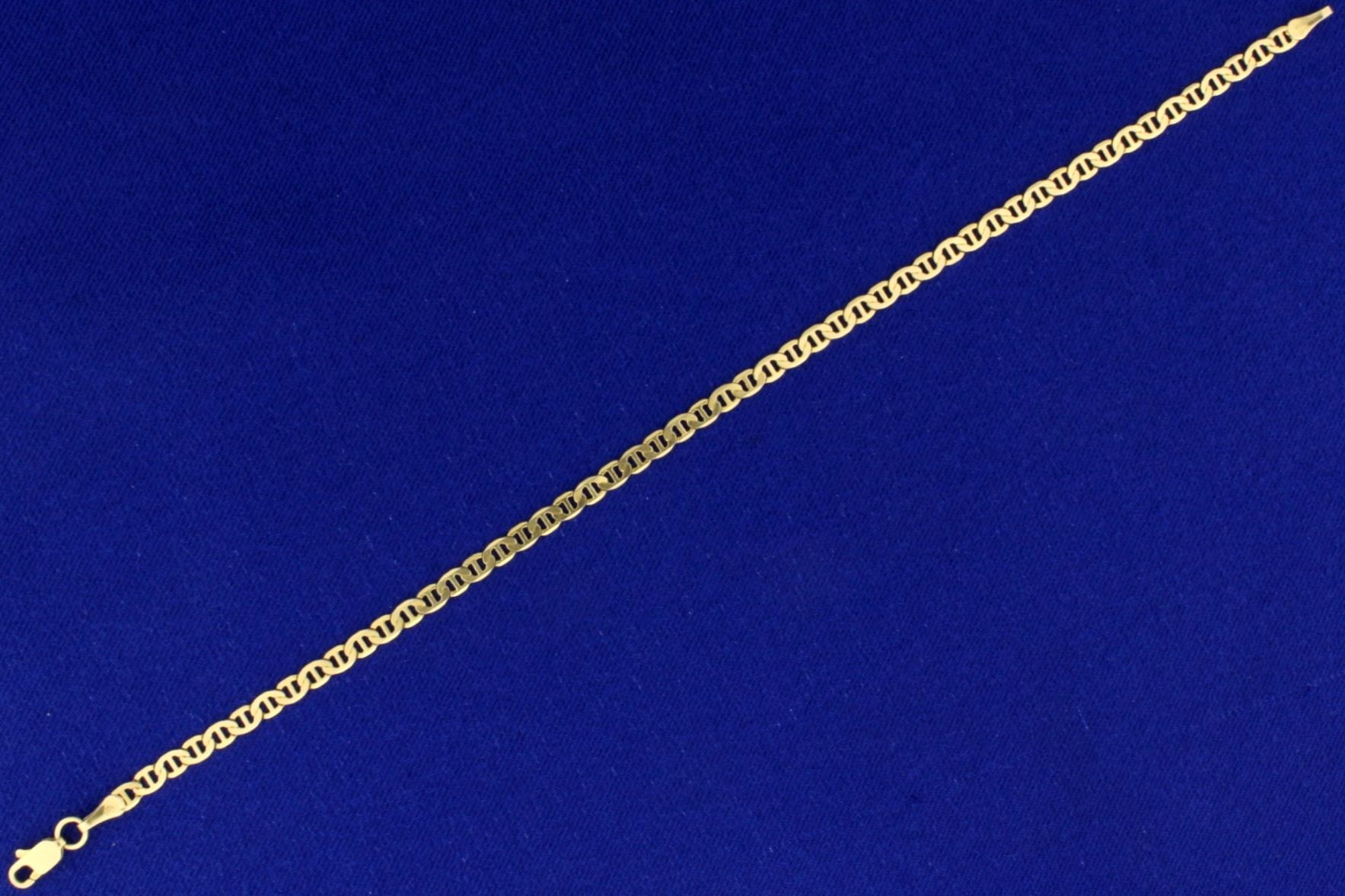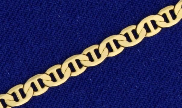 In 14k yellow gold. 3mm wide, with lobster clasp. 2.4g.