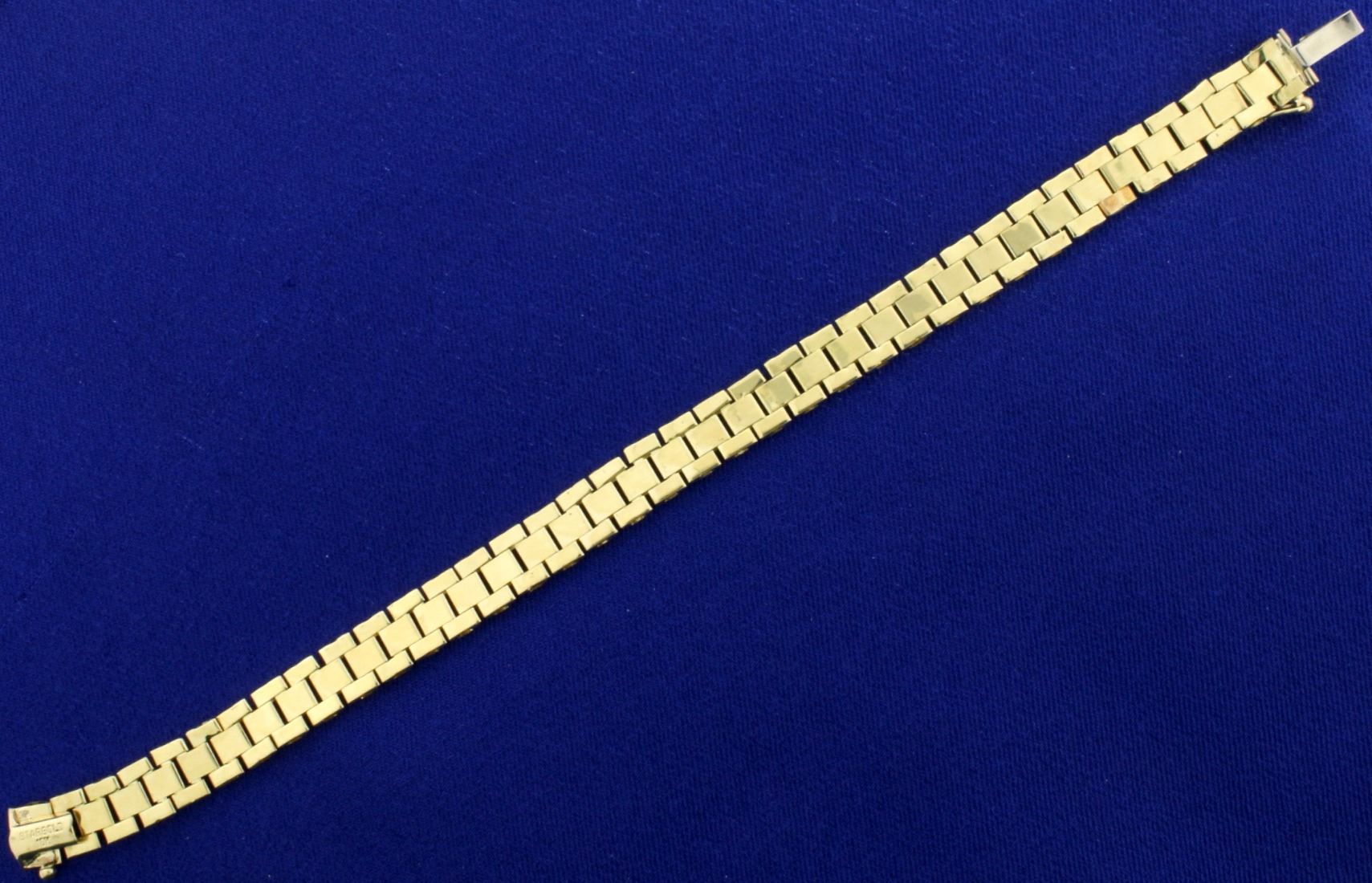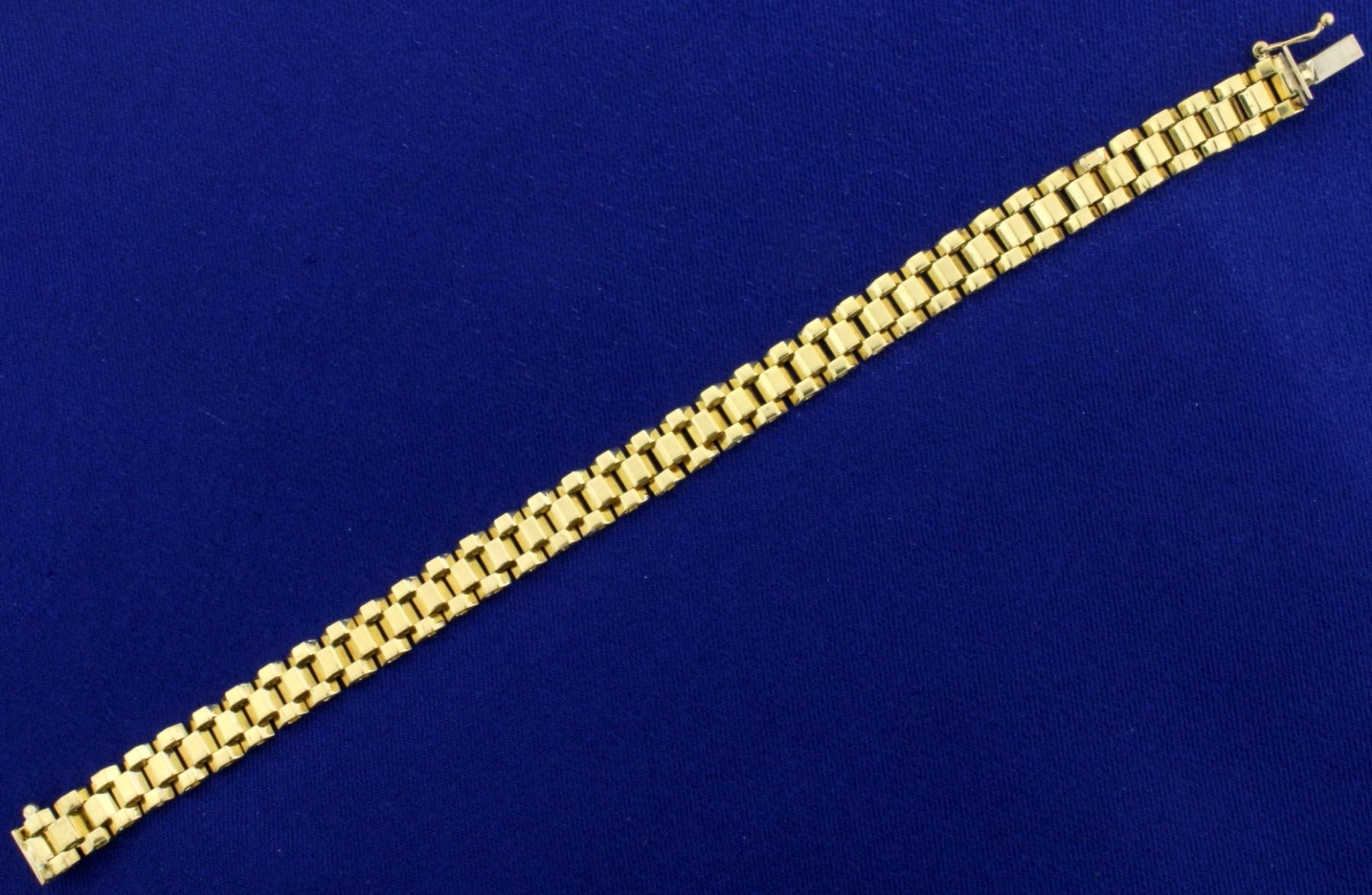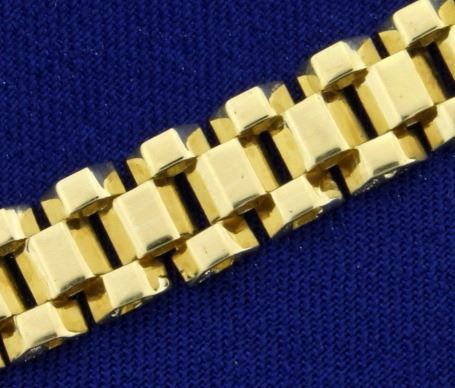 In 10K Yellow Gold. 7 1/2", with safety clasp. 8.6g