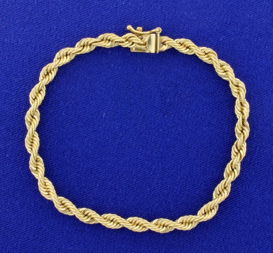 14k yellow gold, this chain is about 4mm wide and has a safety clasp. 11.9g