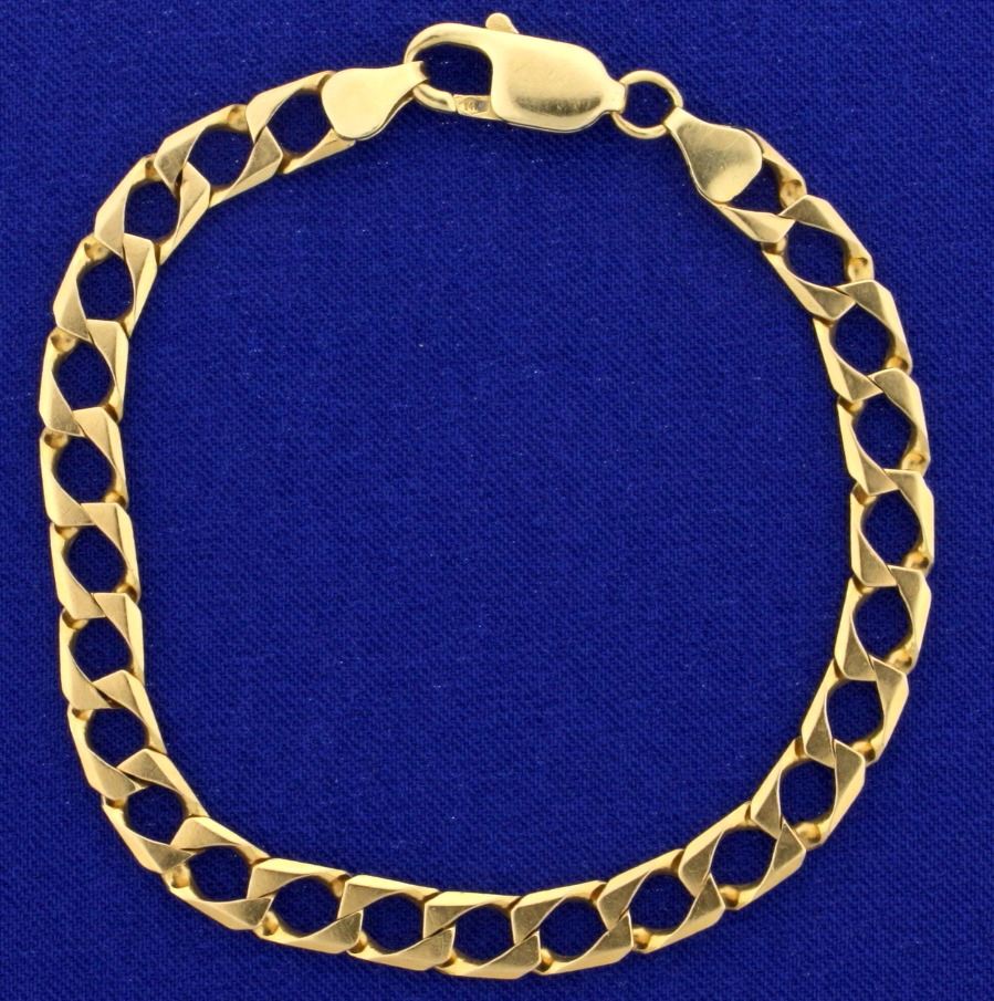 In 14k yellow gold, 6mm wide with lobster clasp. 10.6g.