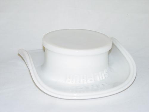 7 1/2" MILK GLASS HAT "UNC SULPHUR"-WHITALL, TATUM & CO., PHILA. & NY