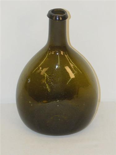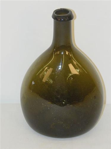 7 1/2" NEW ENGLAND FREE BLOWN CHESTNUT BOTTLE-OLIVE GREEN W/ OPEN PONTIL (7 1/2" T X 4 3/4" W) - GOOD CONDITION;