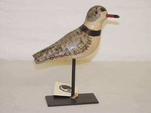 7 1/2" PIPING PLOVER SHOREBIRD DECOY ON A METAL BASE SIGNED JAMES LONG, SILENT SWAN STUDIO-1992