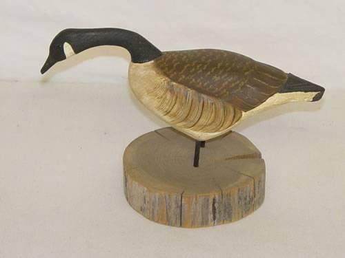 7 1/2" SIGNED CANADA GOOSE DECOY ON A WOODEN BASE - SIGNATURE UNCLEAR-2000
