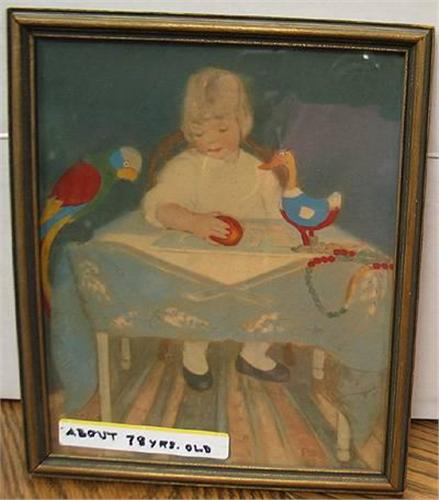 7 1/2" x 9" Pastel? Of a girl. The piece is approximately 78yrs old