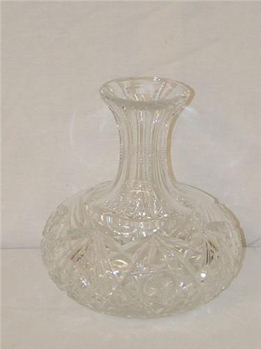 7 1/4" CUT GLASS CARAFE, UNSIGNED - TINY CHIP ON RIM