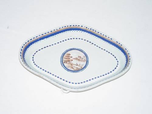 7 1/4" EARLY ORIENTAL EXPORT TRAY W/ PAINTED LANDSCAPE CENTER & BLUE BORDER;