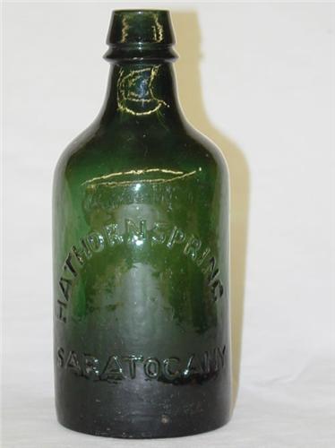 7 1/4" EMERALD GREEN HAWTHORN SPRING WATER BOTTLE, SARATOGA NY, PINT