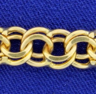 In 14K yellow gold, it is 7.7mm wide. 16.3g