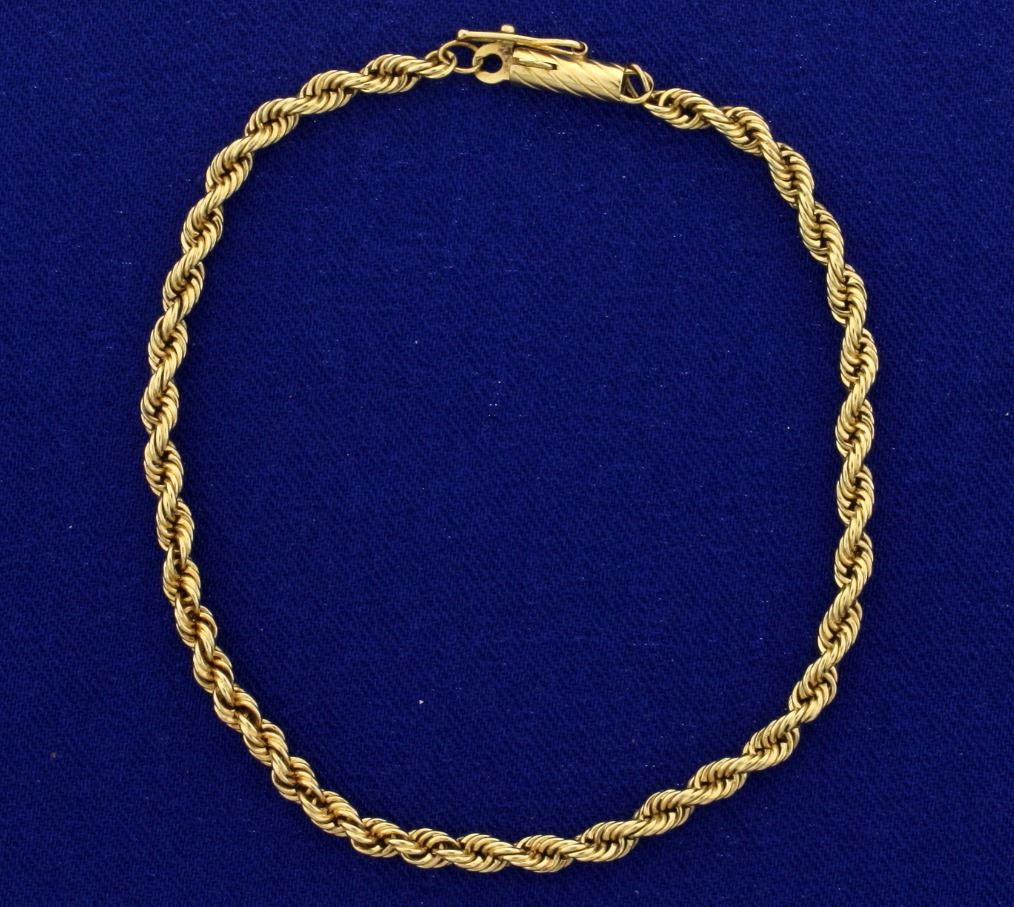 In 14k yellow gold. 3mm wide with safety clasp. 5.4g.