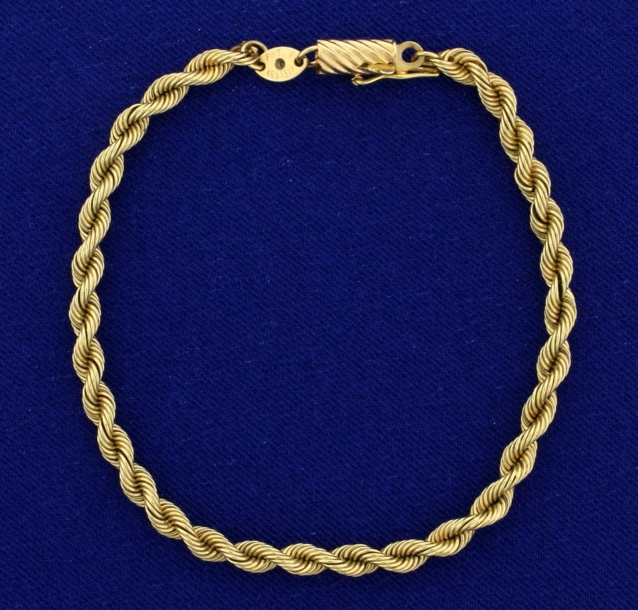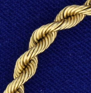 In 14k yellow gold, containing a 1/2pt diamond by safety clasp. 3.6mm thick. 7.2g.