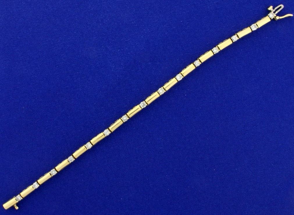 In 14k yellow gold, containing fifteen high quality diamonds of SI clarity/H color. With safety clasp. 12.4g.