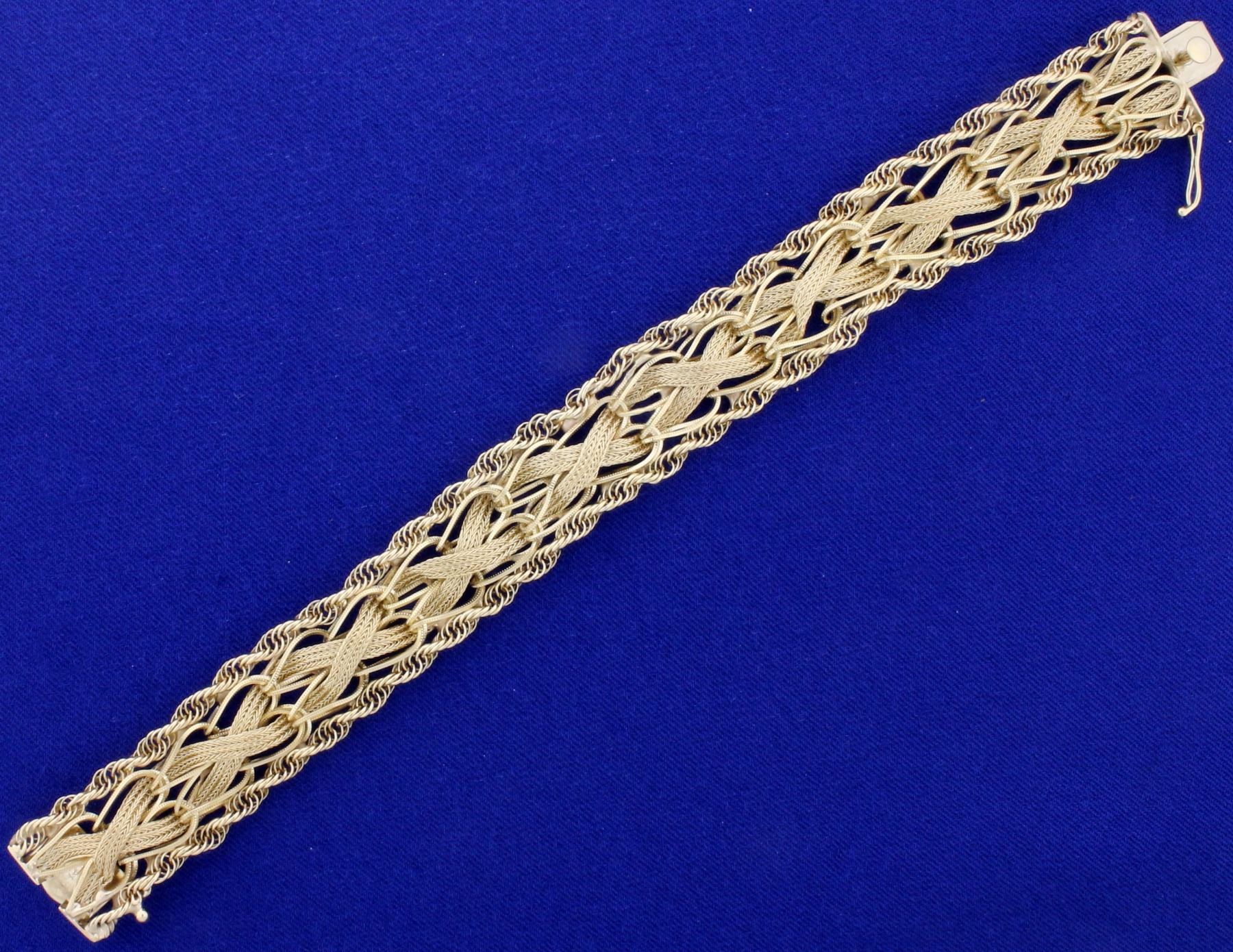 In 14K Yellow Gold. 7 1/8 inches long, 15.2mm wide. 23.9g.