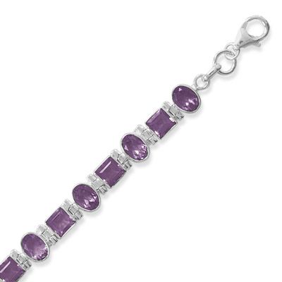 7" + 1" extension sterling silver 7mm x 5mm oval and 5mm x 5mm square amethyst. .925 Sterling Silver