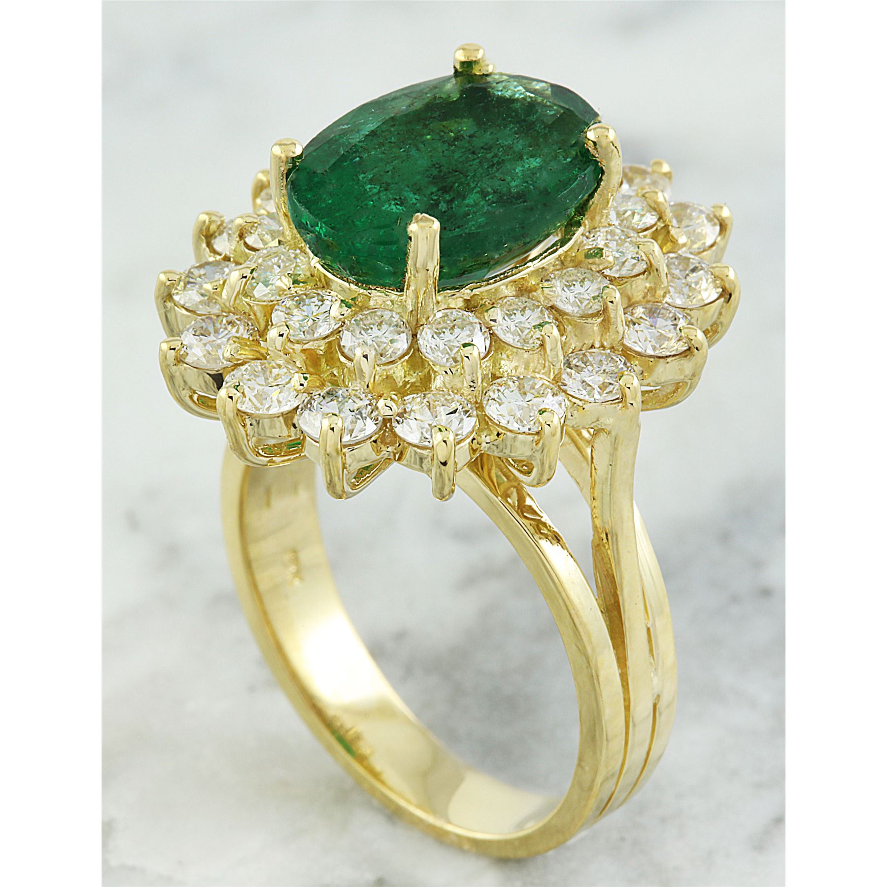 7.10 CTW Emerald 14K Yellow Gold Diamond Ring