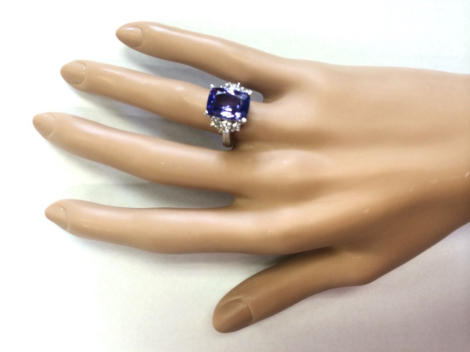 7.10 CTW Natural Blue Tanzanite And Diamond Ring 18K Solid White Gold