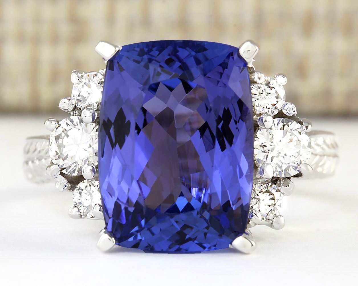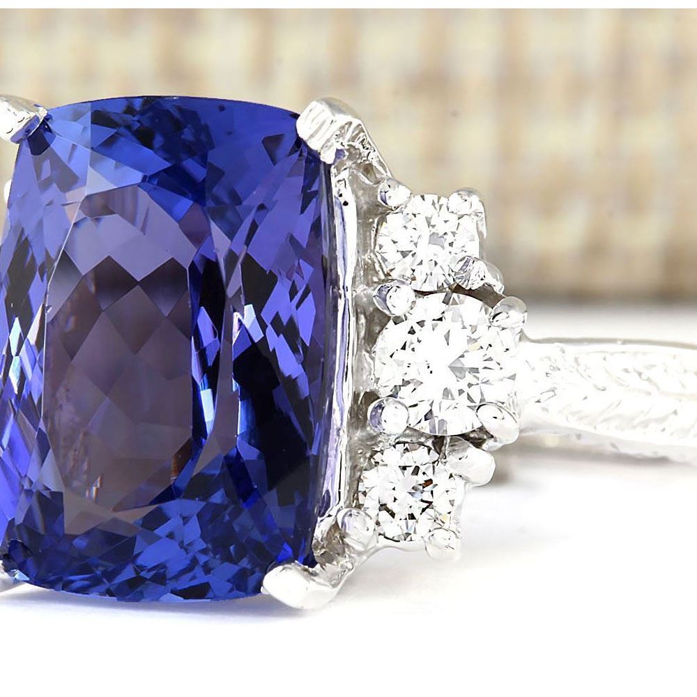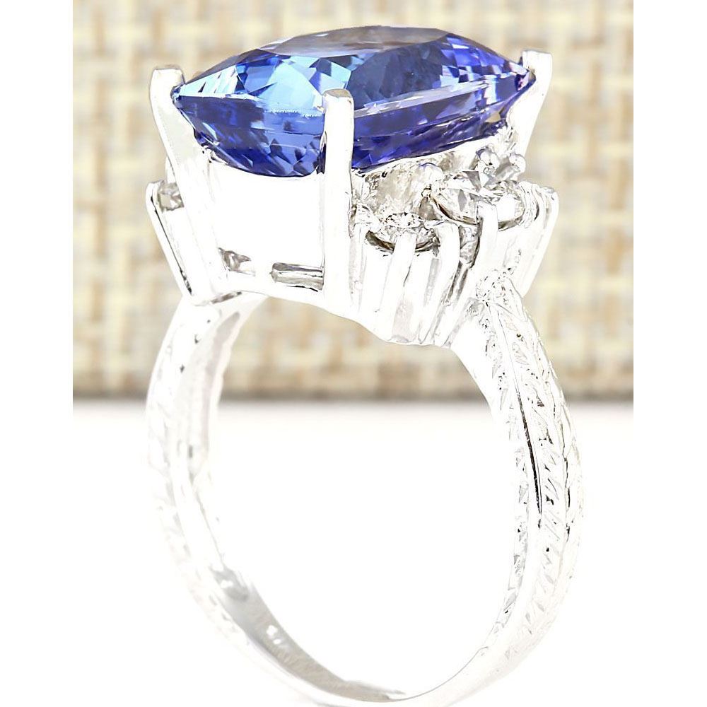 7.10 CTW Natural Blue Tanzanite And Diamond Ring 18K Solid White Gold