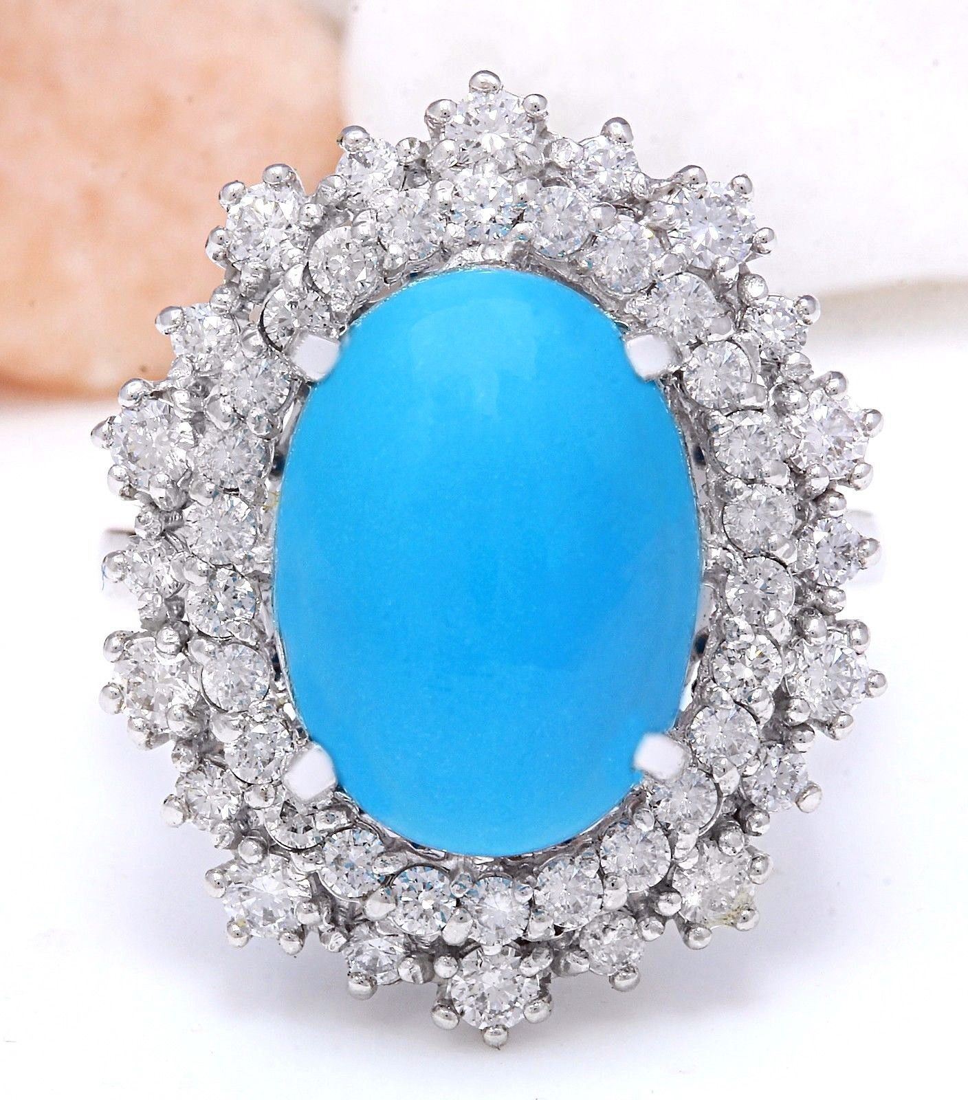 7.10 Carat Natural Turquoise 14K Solid White Gold Diamond Ring