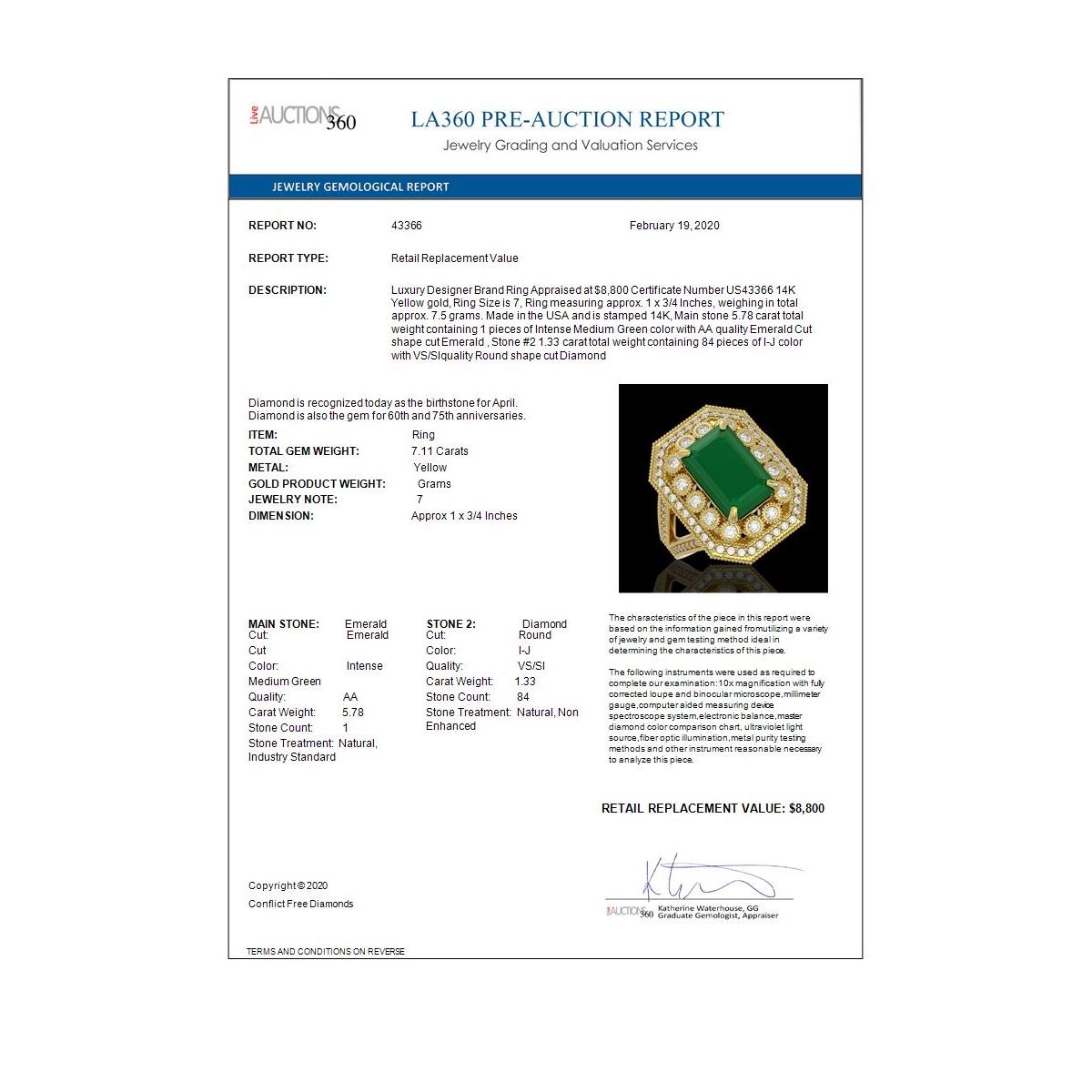 REF-178K2Y - SKU: 43366 ---- 7.11 ctw Certified Emerald & Diamond Victorian Ring 14K Yellow Gold