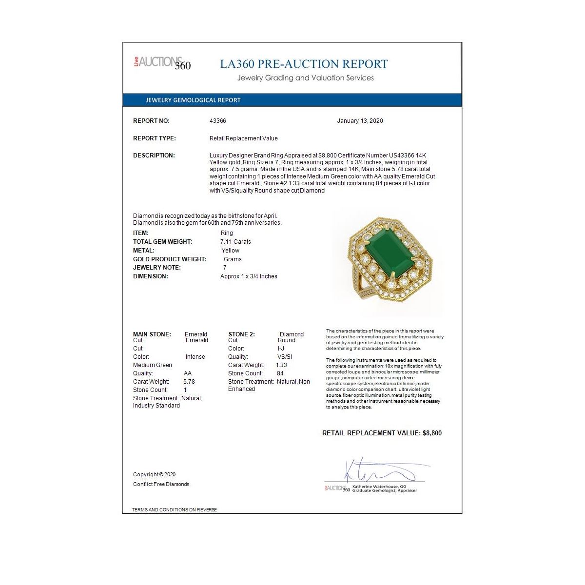REF-178Y2X - SKU: 43366 ---- 7.11 ctw Certified Emerald & Diamond Victorian Ring 14K Yellow Gold