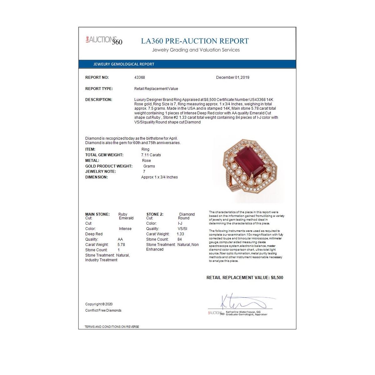 REF-171F5M - SKU: 43368 ---- 7.11 ctw Certified Ruby & Diamond Victorian Ring 14K Rose Gold